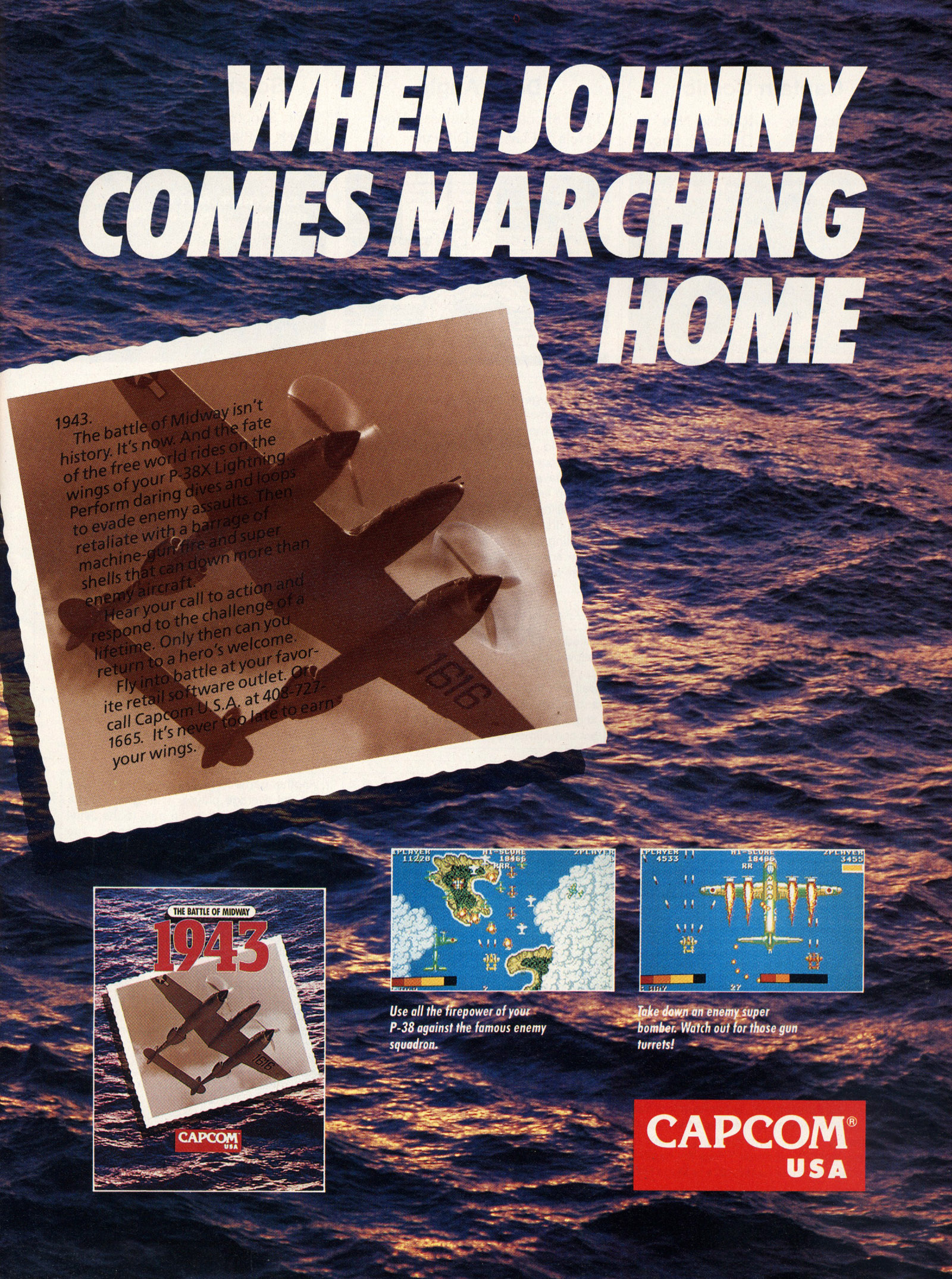 The graphics are nearly arcade quality, accompanied by such a good fight song you might just find yourself humming it while you fight battles encountered away from your Nintendo. Capcom has a winner, and 1943 is filled with everything but a dull moment. Pass codes, power-ups, slick delivery and fast action will definitely have you coming back for more.