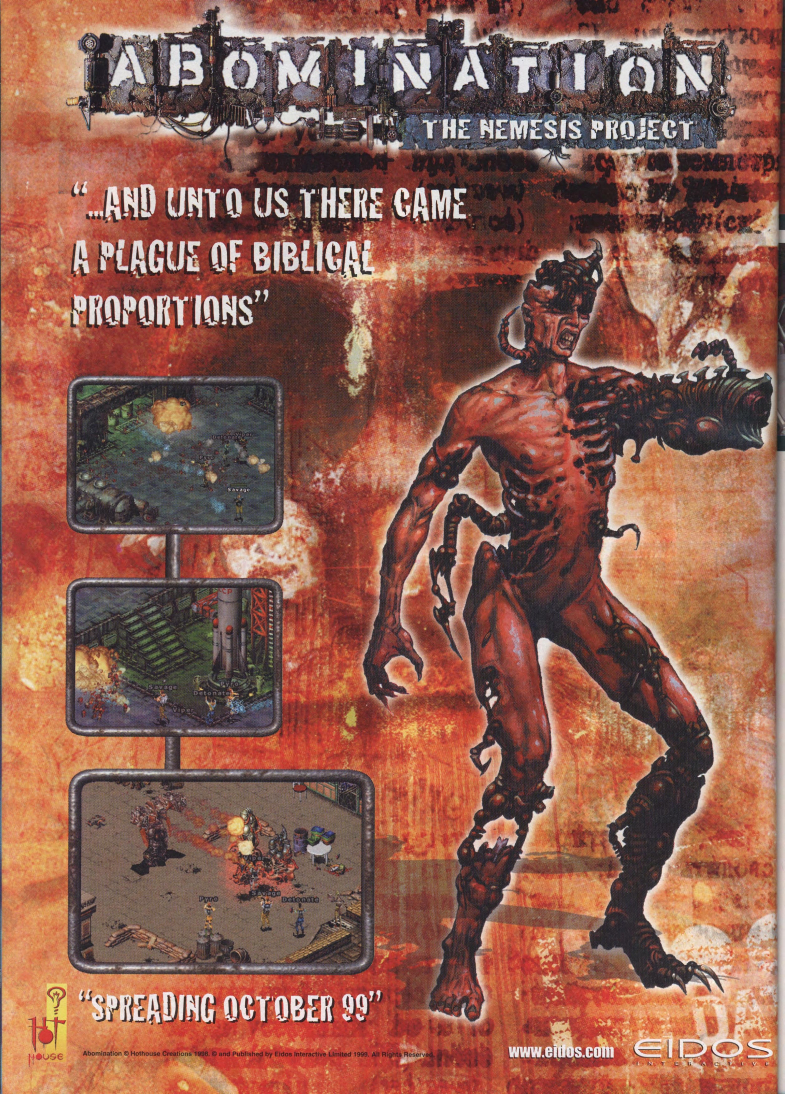 Abomination: The Nemesis Project is shaping up like a cross between X-Com and Diablo. This real-time tactical-based bloodbath is set in a highly detailed pre-rendered world with 3D characters. You'll select a team of four genetically altered marines trapped in a chaotic future ruled by a biological terror called the Brood. From the last Brood-free city in America, you'll travel the wasteland of our globe to unravel the mystery of these undead uglies. Your character's will invoke Darwinism by adapting the Broods weaponry, even becoming Brood themselves!