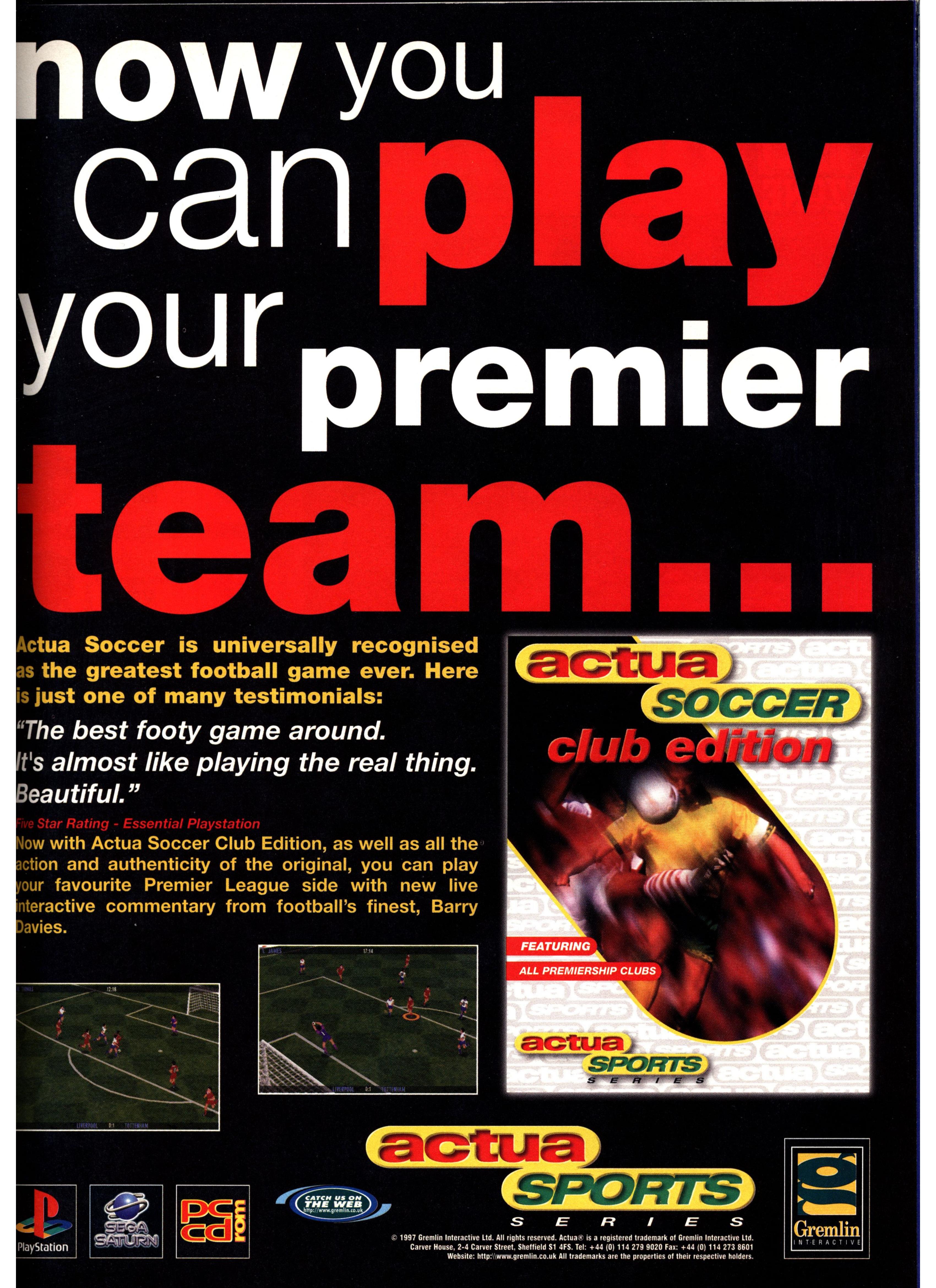 The original Actua Soccer broke the mould into thousands of pieces in terms of graphics and playability, successfully bridging the gulf between the super-slick presentation of FIFA Soccer and the instant accessibility and playability of Sensible Soccer.