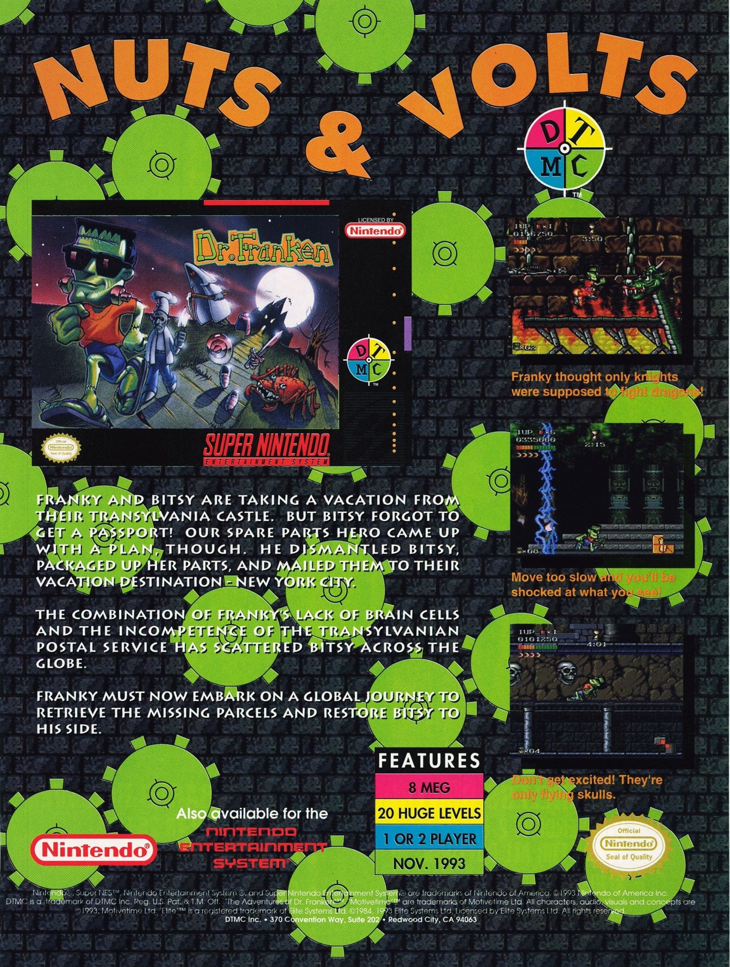 Dr. Franken was a video game released for Game Boy and Super NES by Elite Systems.