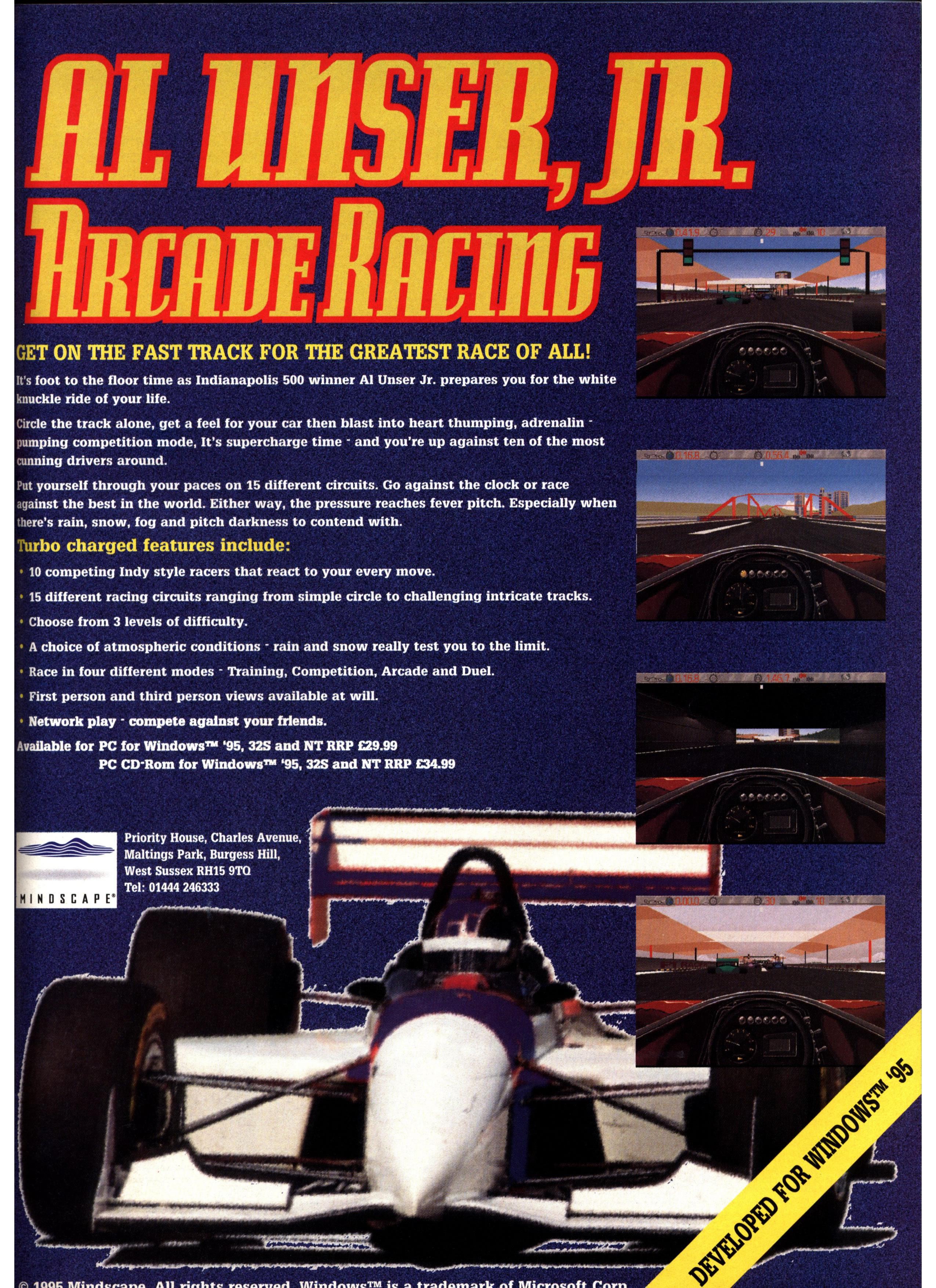 Unfortunately, at the end of the day Al Unser simply doesn't have sufficient fun factor to keep you coming back for more. So, the great Windows 95 games phenomenon (that's it, one more time and you're sacked - Ed) has so far been a something of an anti-climax. However, if you really want to see what Mindscape can do with Windows 95 (bye bye - Ed), hold out for the release of Warhammer which, from what I've seen of the Beta version, looks rather stunning.
