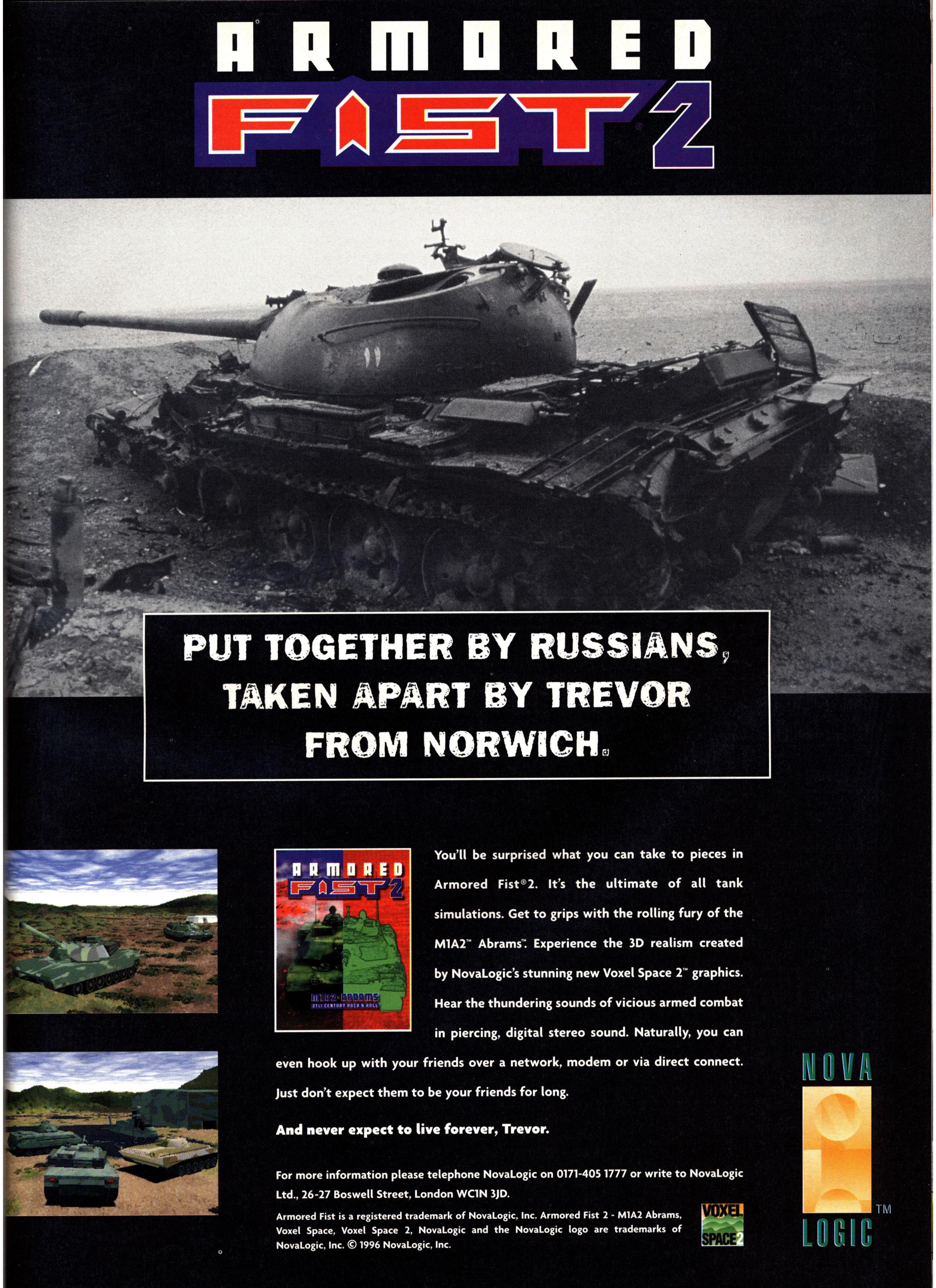 Armored Fist 2 does indeed "raise the standard for tank sims" as NovaLogic claims, clearly out-gunning the agingIM1A2 from Interactive Magic. However, in the coming months, Armored Fist 2 will have some heavily clad competitors to beat. Microprose's M1 Tank Platoon II and BMG Interactive's Spearhead are both expected to be phenomenal M1A2 Abrams tank simulations. A solid, enjoyable game that projects a clear picture of tank warfare, Armored Fist 2 will no doubt be saluted by sim veterans and civilian gamers alike. Considering myself a choosy gamer, I spent hours immersed in the Armored Fist 2 campaigns and will likely spend many more both in single and multiplay.