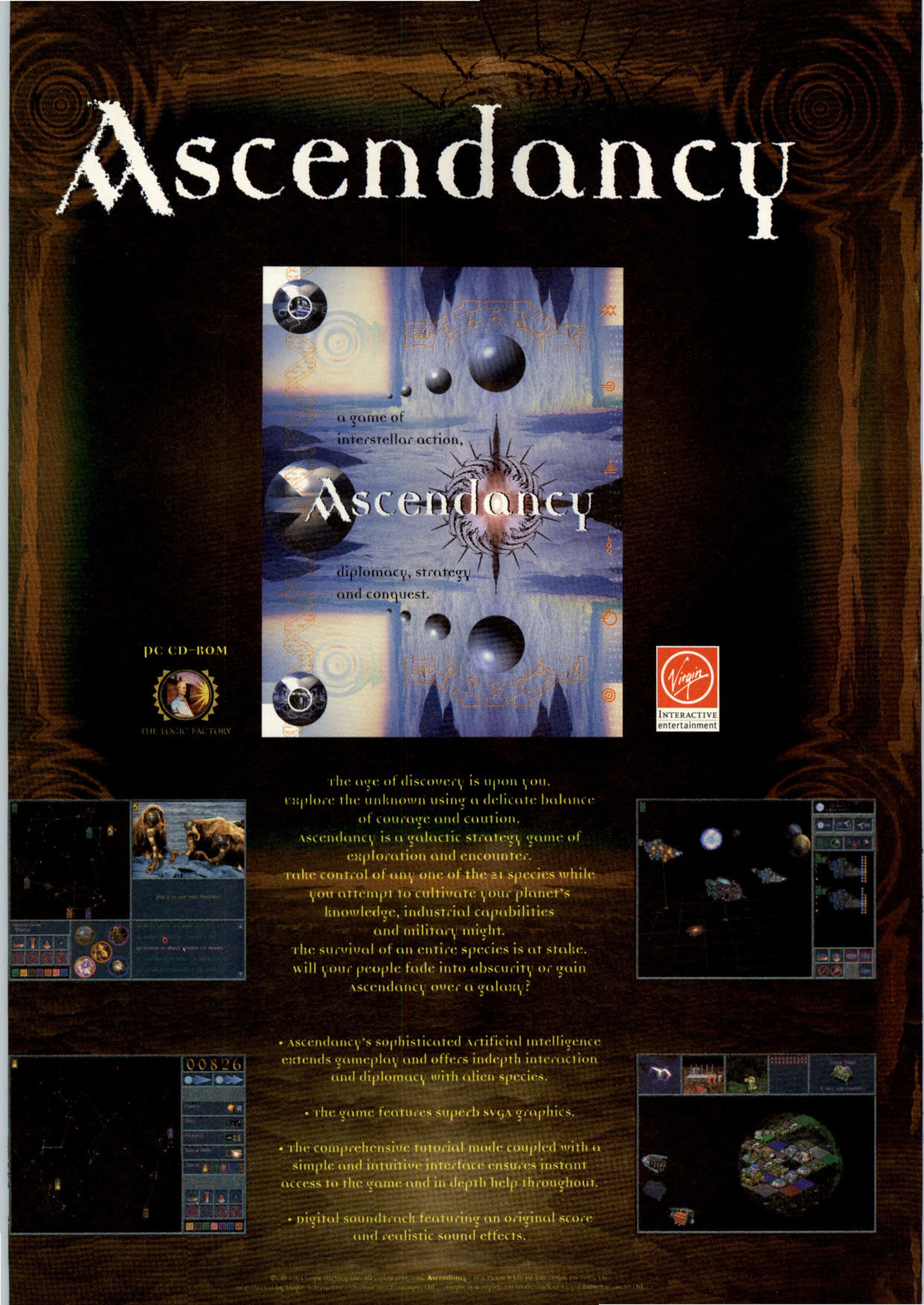 Yes, that age-old problem of strategy games with mediocre graphics finally seems to have been put so far behind us it'll need a passport and flight reservations to catch up. You can't fault the presentation of Ascendancy, from the high-quality and wonderfully varied graphics, to the haunting and orchestral music, to the informative and helpful on-screen tutorial. Never has a game managed to make you want to keep playing as much as this one does.