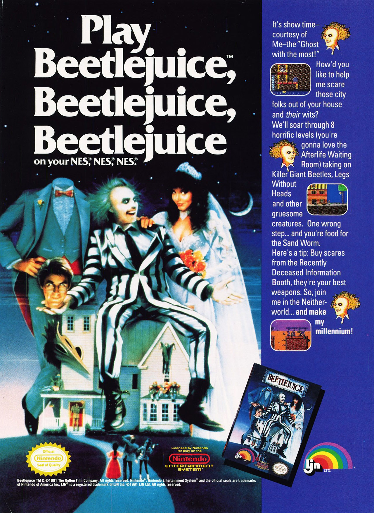 Beetlejuice is the title of a video game created by Rare & published by LJN for the Nintendo Entertainment System. The game is loosely based on the film and animated series of the same name.