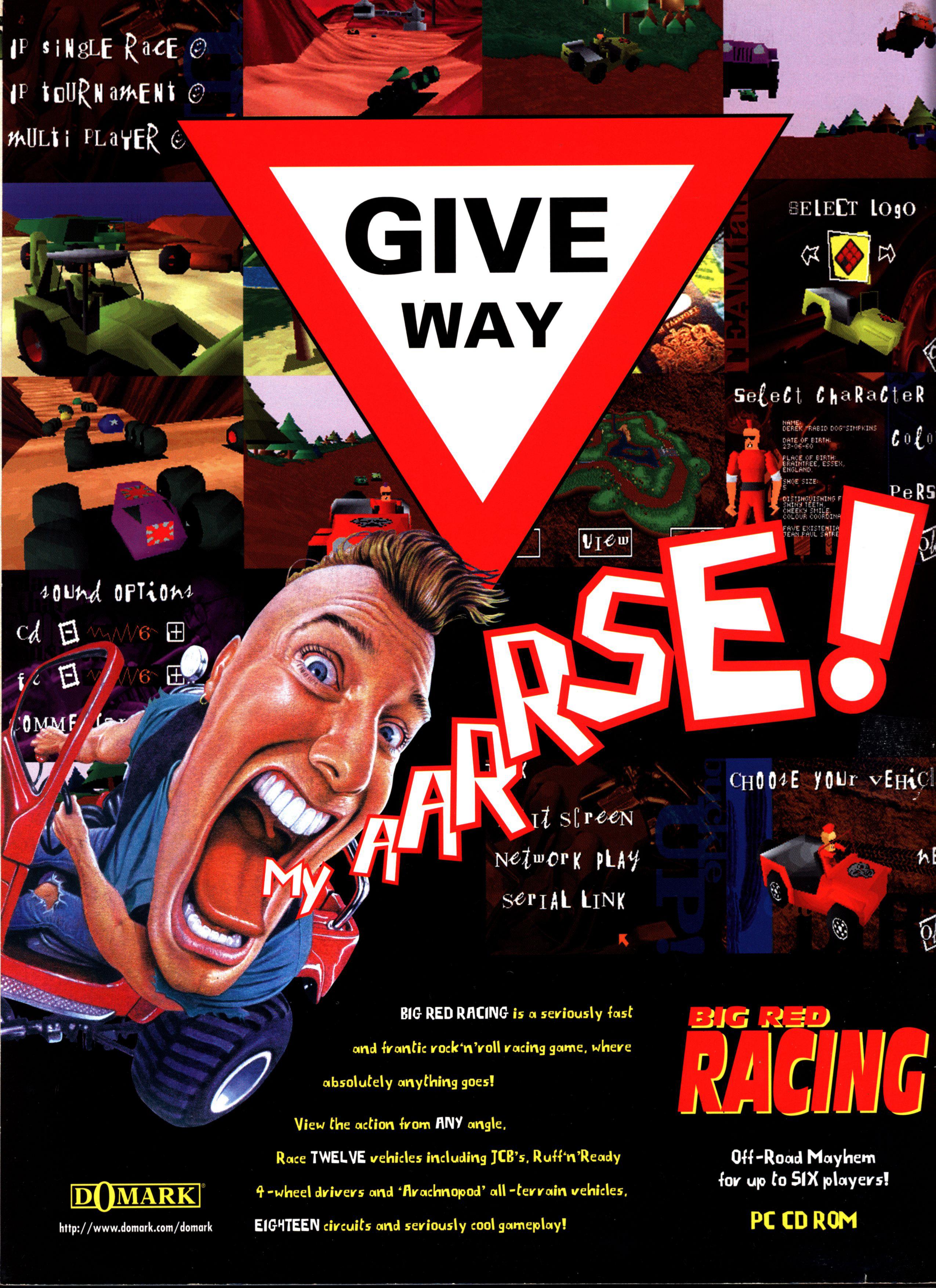 How About I Start by stating the painfully obvious stuff first, so we can get it out of the way. Okay then... Big Red Racing is. in a world that already has more pc racing games than it can know what to do with, yet another pc racing game. It contains all your standard 'single' races, your standard 'tournament', and your (these days) standard multi-player option: up to six on network, or two using the serial cable or split-screen method.