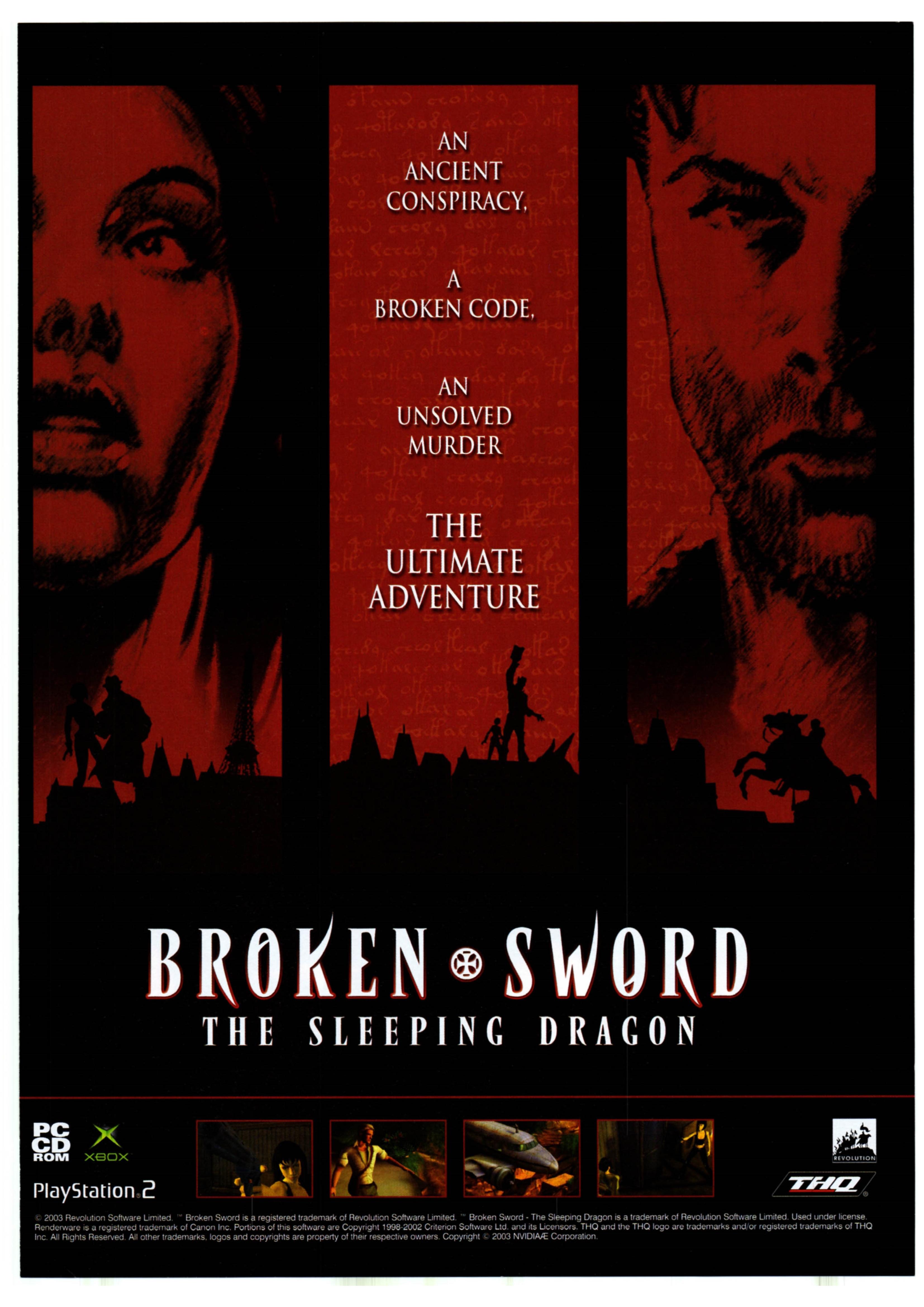 George Stobbart's adventuring days were finally behind him. Now a successful patent lawyer, George was headed to the Congo to file a patent that could make him rich. However, adventure seems to find its way to George anyway. Strange, violent weather and seismic events around the world put George and those around him in real peril, and his earlier dealings with sinister, secret organizations like the Neo-Templars seem to be drawing him into a new mystery. Join George, his old friend Nico Collard, and several other familiar and not-so-familiar faces as they travel the world in search of answers. Broken Sword: The Sleeping Dragon, is the third in a series from The Adventure Company. From the depths of the Congo to the mean streets of Paris and beyond, you control several characters in order to unveil a mystery millennia in the making.
