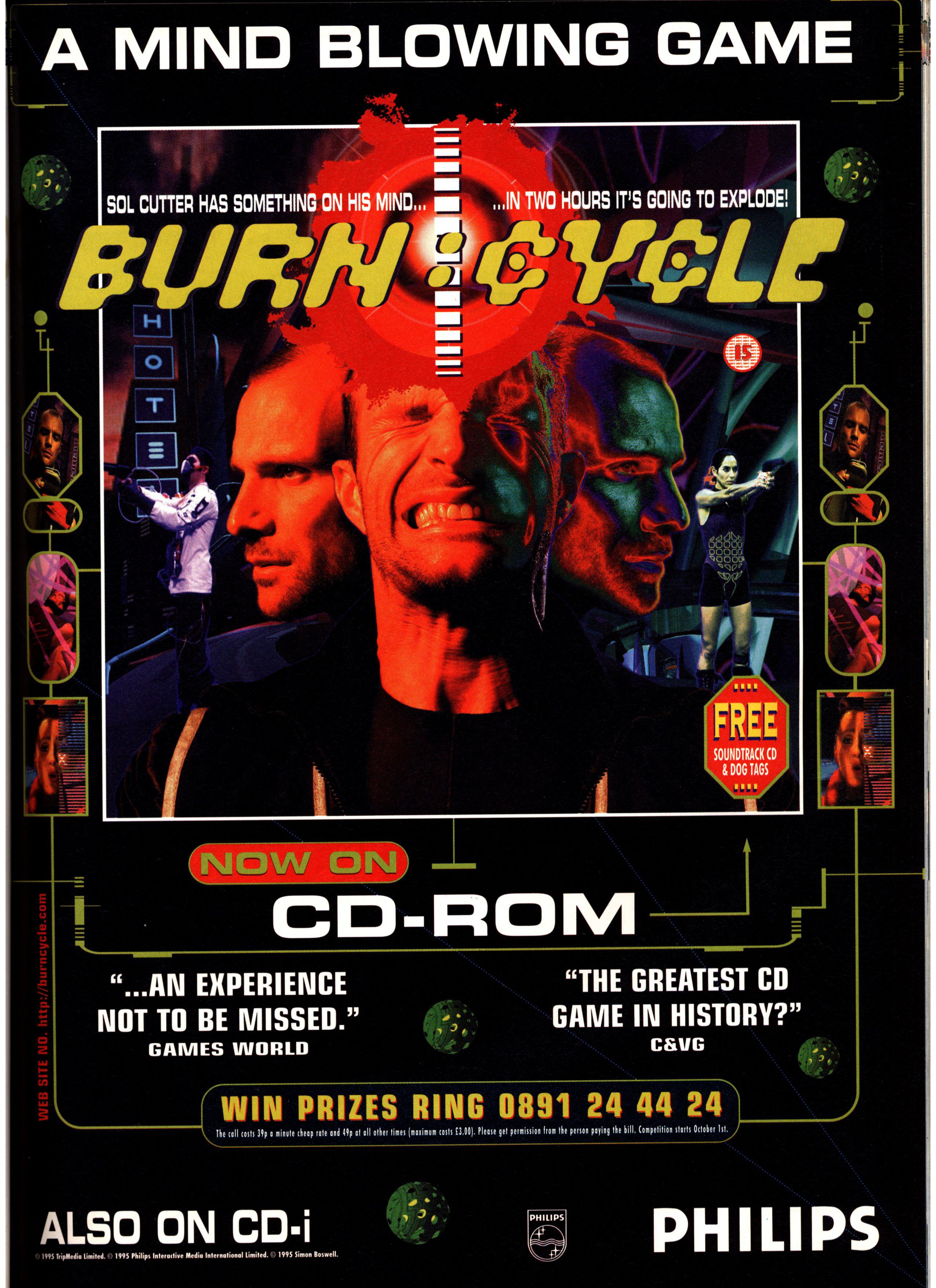 So we've seen it all before but the game is worthy of a second look. After all, it received rave reviews when it came out on CD-i last year - though it wasn't exactly up against stiff opposition; in fact it was barely up against any opposition at all. The world of cd-rom is a lot more competitive, with barrow loads of first-person perspective interactive adventures. (They're in barrows, 'cos that's where people usually chuck them when they realise that there's naff all gameplay and the video sequences are badly filmed, badly acted and take about a month to access.) BurrvCycle makes mincemeat of most of the competition (as it does with most of the characters in the game).