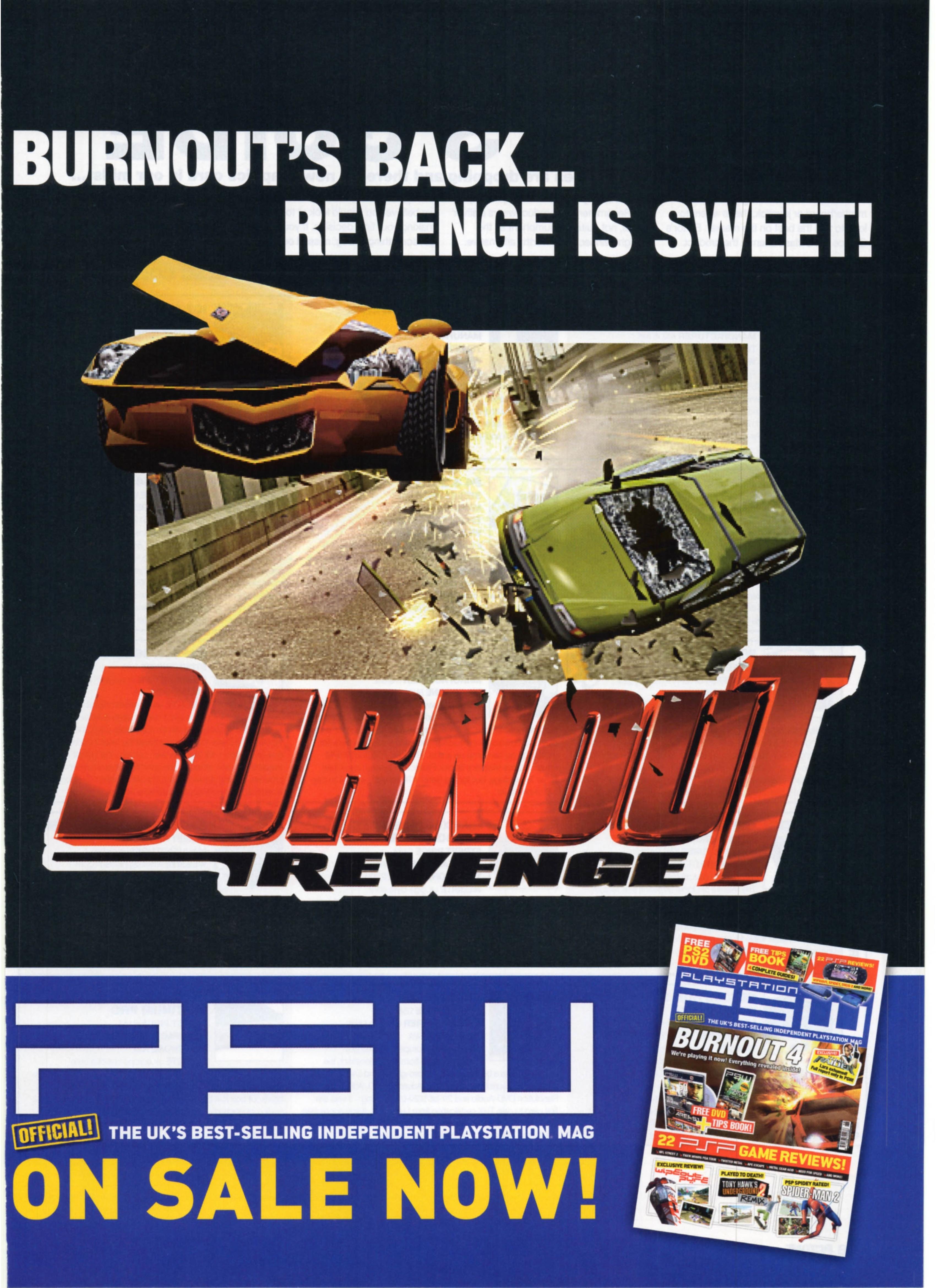 How was It Revenge might as well be an IV of adrenaline pumping into my veins. It has the same intense traffic-battling action as Burnout 3. though don't expect the same huge jump in quality that you saw from Burnout 2 to 3.