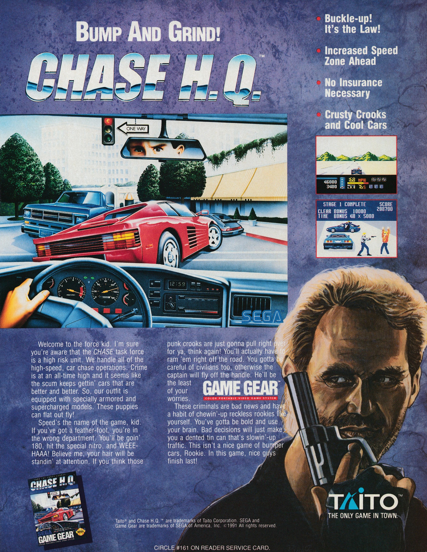 Nancy at Chase H.Q. has your orders. You are to put a stop to the criminals that are attempting to leave the city! To stop them, you have been given a supercharged Porsche that can outrun anything on the road!