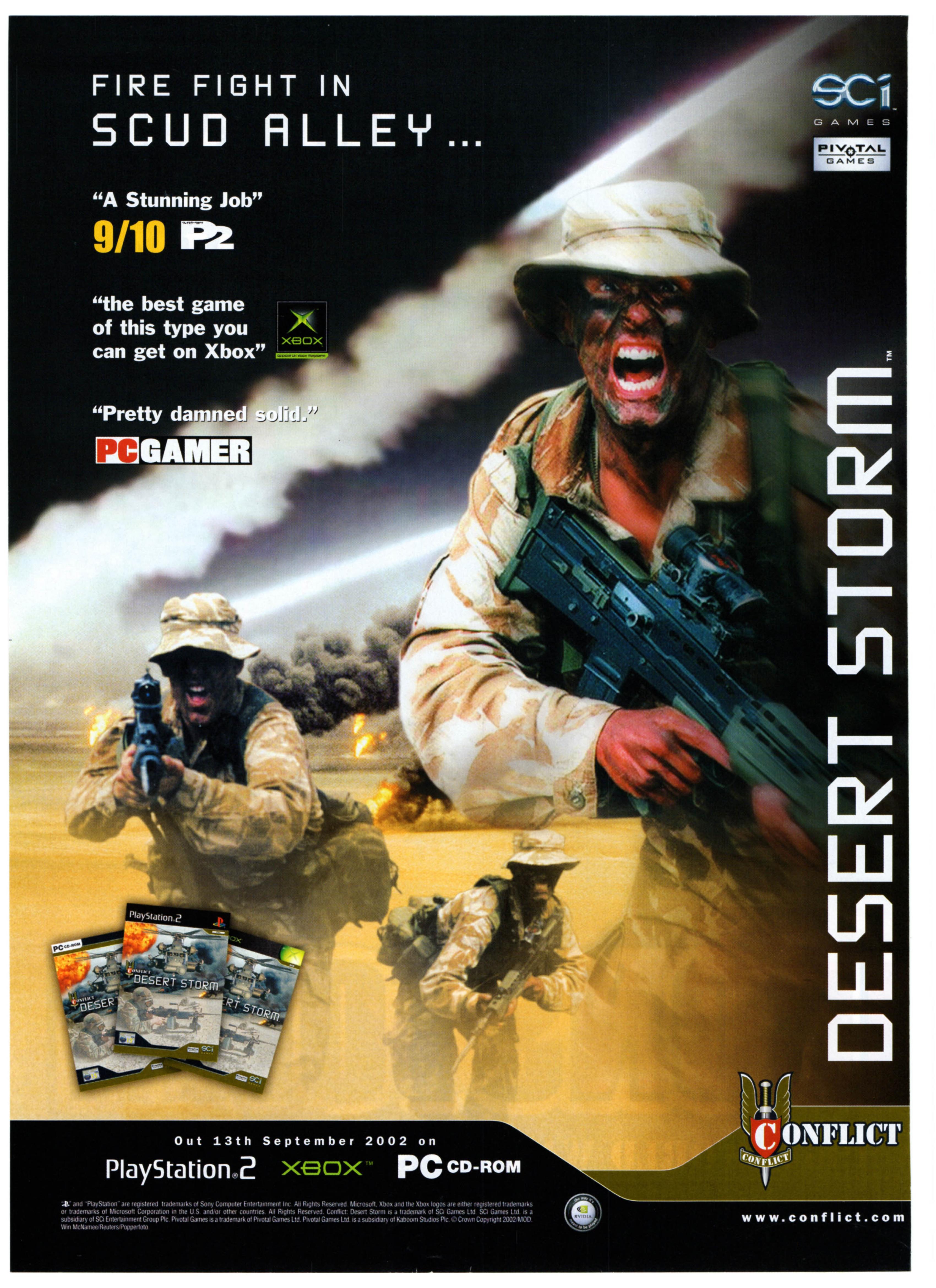 Хусейн держит под каблуком страну с мощнейшими залежами нефти. Саддам, видимо, скучает и решает напрыгнуть на соседнее государство в 1980 году. Ирак военизируется, критически пустеет казна. Пока солдаты ложатся в землю, тиран убирает надоедливых левых и центристов, лепит конституцию под себя. Не гнушается и применить химическую отраву в боеприпасах. Восемь лет длится кровавая война. Спустя два года «демократу» снова не сидится на месте и он отдаёт приказ войти войскам Ирака в Кувейт. ООН голосует за операцию по их обезвреживанию, солдаты НАТО вступают в мясорубку. Тут начинается сюжетаная линия игры. Её сюжет проходит в пустыне между Ираном и Аравийским полуостровом. Главный герой Conflict: Desert Storm — командир элитных подразделений из США и Соединённого Королевства.