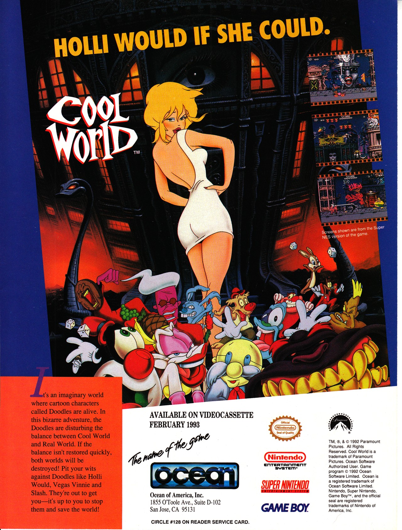 Ocean will offer three ways to fall into Cool World in 1993 with games for the SNES, NES, and Game Boy. While you're eagerly waiting to enter Cool World, take a sneak peek at what's in store for your SNES.