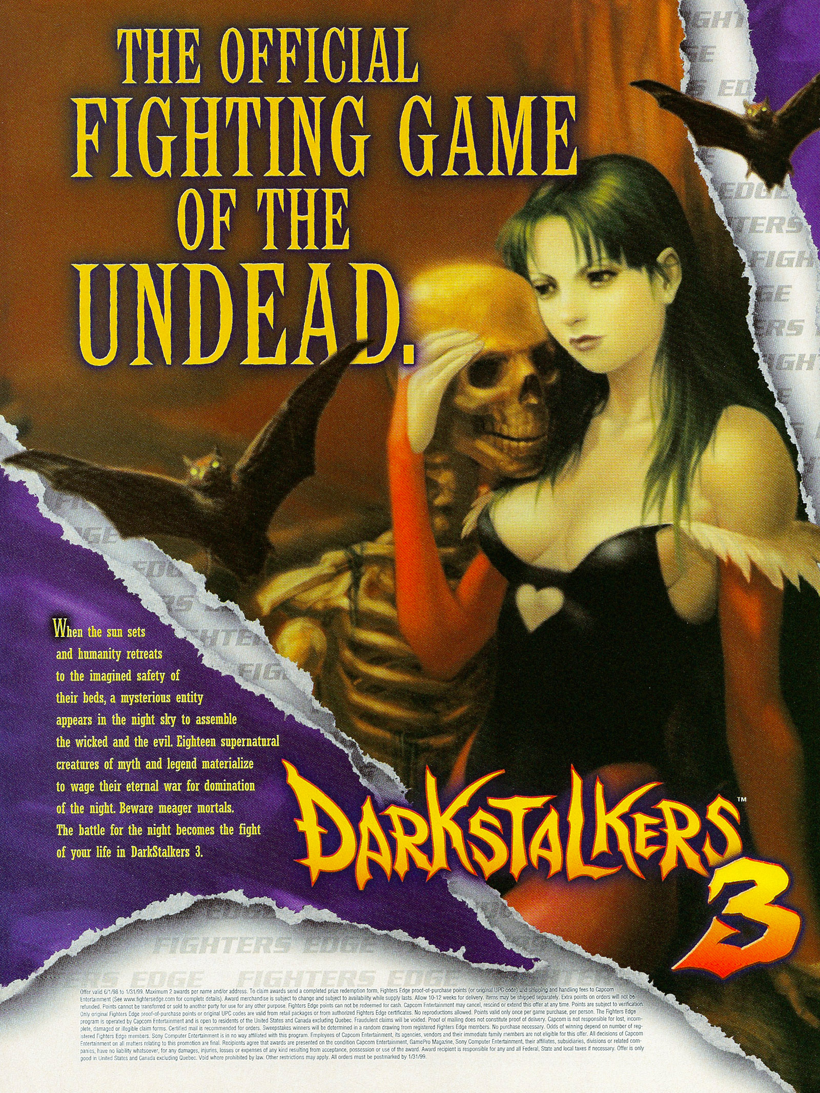 Darkstalkera 3 shouldn't be relegated to the rehash bin or called a bad game--just don't expect innovative gameplay on the level of Soul Blade or Tekken 3. Despite its overly-friendly and familiar gameplay style, DS3 is very fun to play and is a good title for a fright-night fight.