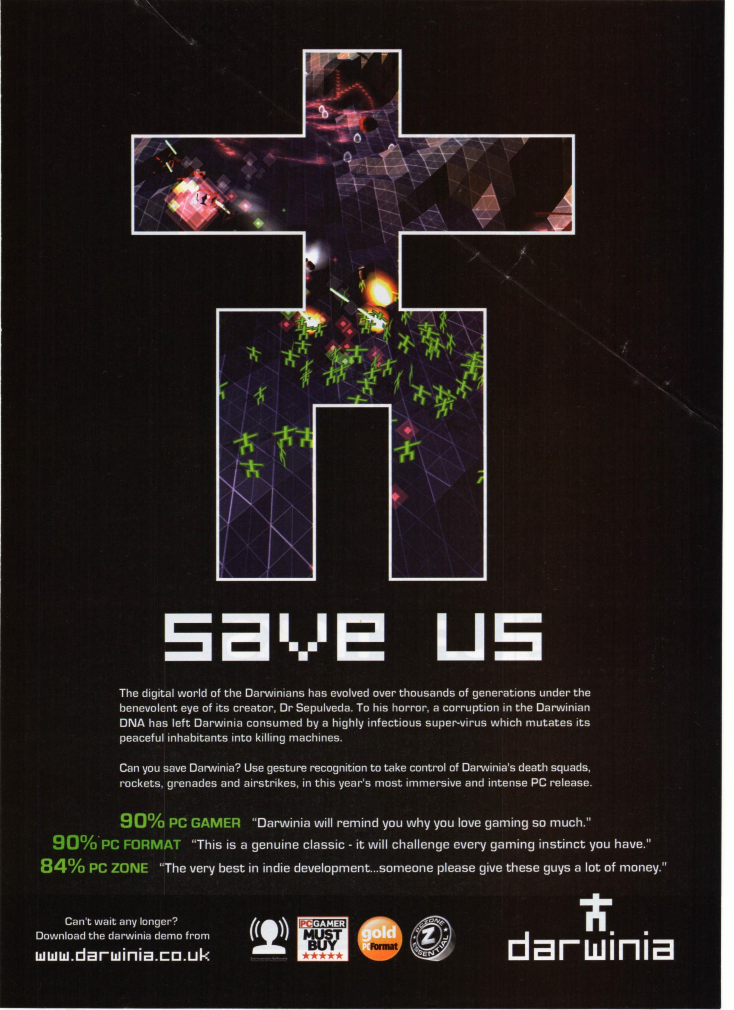 The Ideal scenario for future games production is that developers stop pissing about with the handful of genres that they cling to like a drowning man to driftwood, and forge ahead creating new and wondrous ones. So it's a rather sorry state of affairs that Introversion Software (a tiny self-publishing indie developer) is attempting to move things forward - firstly with Uplink and now with Darwinia, while much of the industry wallows in mediocre rip-offs.