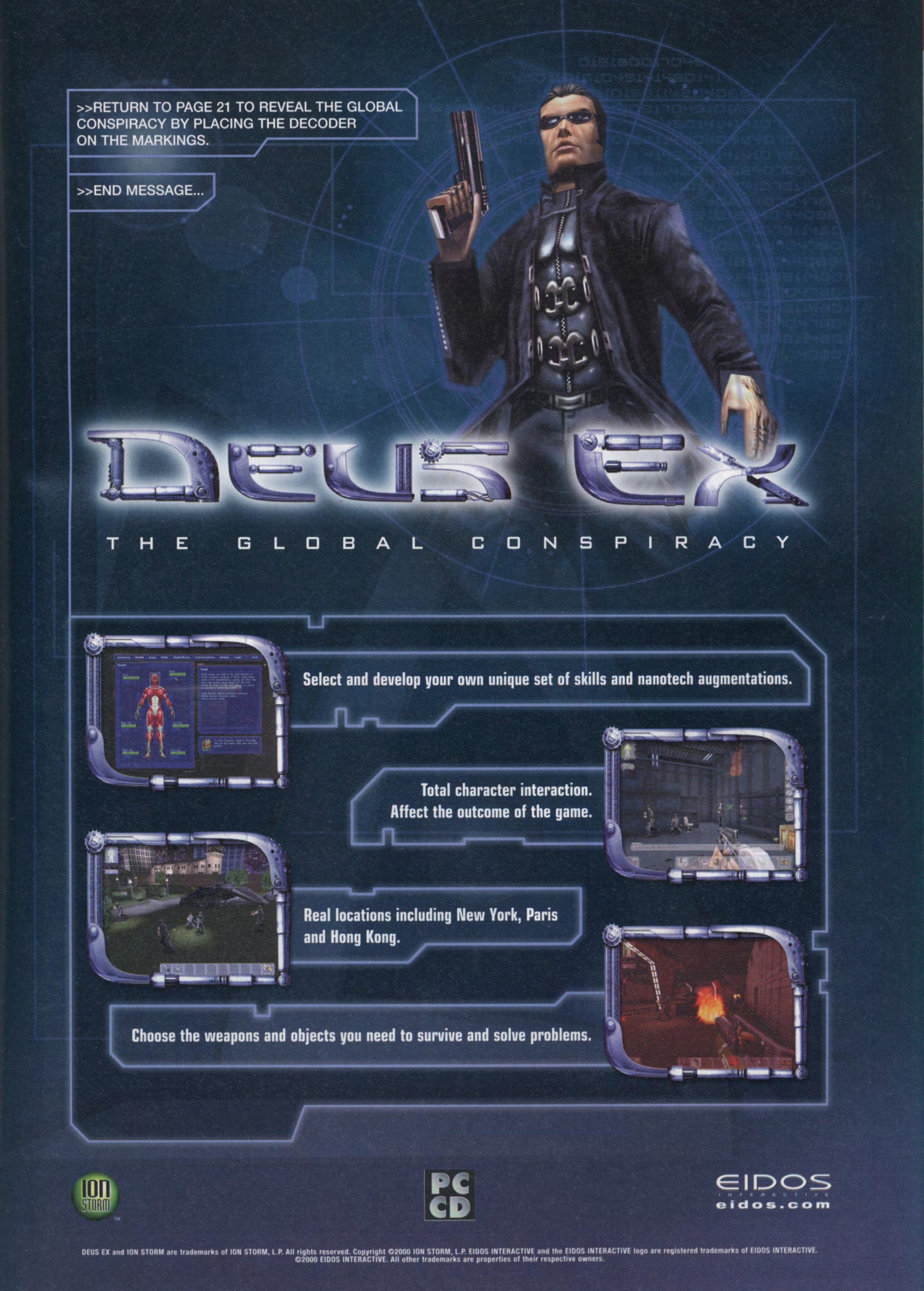 We've been completely swamped by your comments on Deus Ex this month. And apart from a few disconcerted gripes, your opinions have generally been pretty positive Guy, you seem to have missed the point of the game entirely. Deus Ex was never supposed to be just a FPS, and the action is based more around realism than frantic fragging. That's why so much thought is involved, so that you can't always just wade straight in and start shooting all over the place Deus Ex is a deep and engrossing game that can be played in many different ways. When we made comparisons to GoldenEye and Half-Life, we meant it bares similarities to these games, not that it's just like them. You may recall we also said that Deus Ex has similarities to System Shock 2 and Thief, games that are very different to the two titles you mentioned.