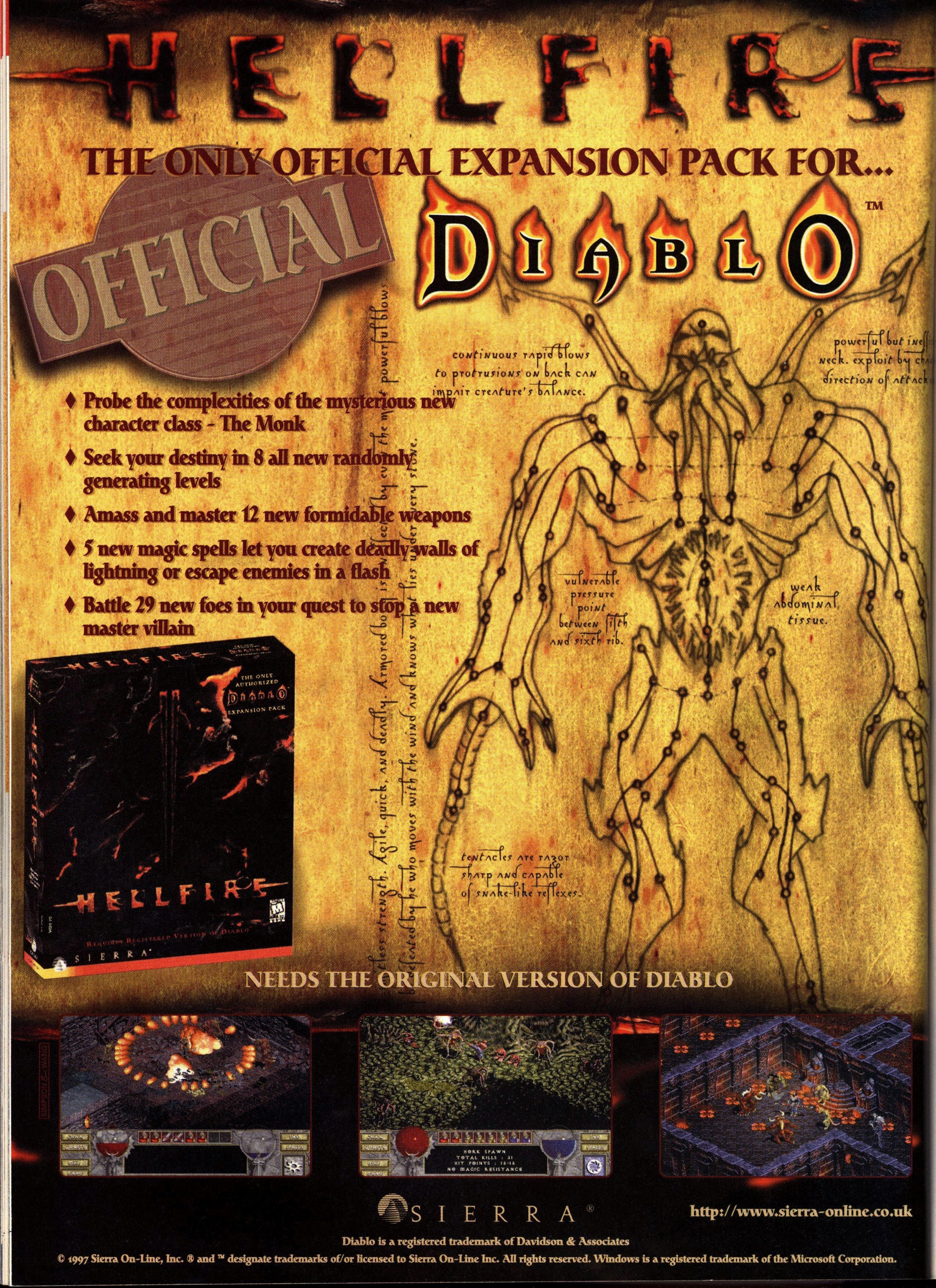 - Additional Items With the expansion of Hellfire in Diablo, the game’s value increased with additional items such as new spells, booby-traps, new weapons, and monsters, which make the game all the more interesting.