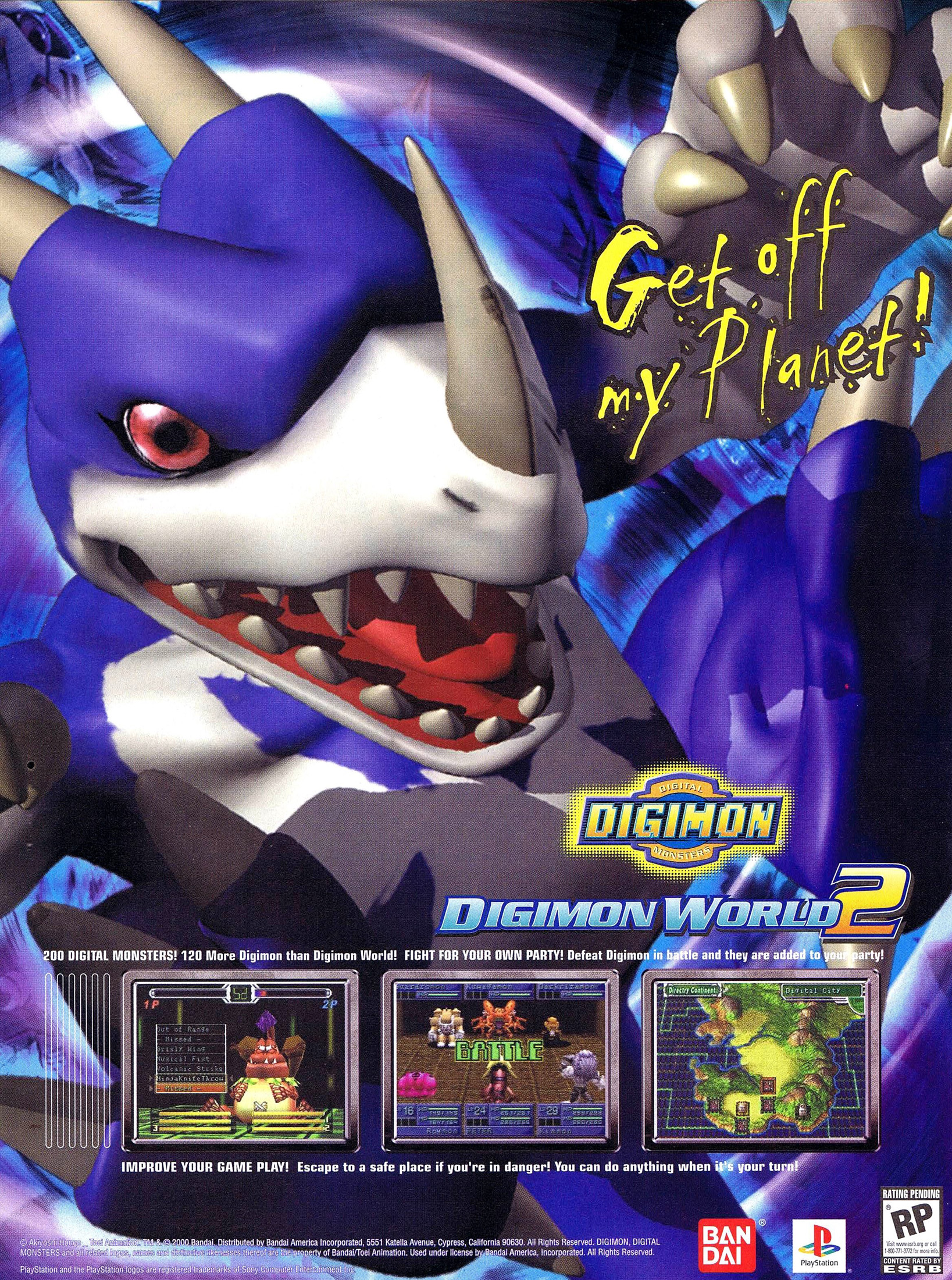 Kiss those high-maintenance monsters goodbye and say hello to the potty-trained critters of Bandai's Digimon World 2. DW2 disposes of the tedious training aspects of the previous game and to focus more on the role-playing aspects. Command up to three of your favorite Digimon in your party for this fully 3D, turn-based adventure. Raise your rank and command more powerful digimon when DW2 ships this spring.