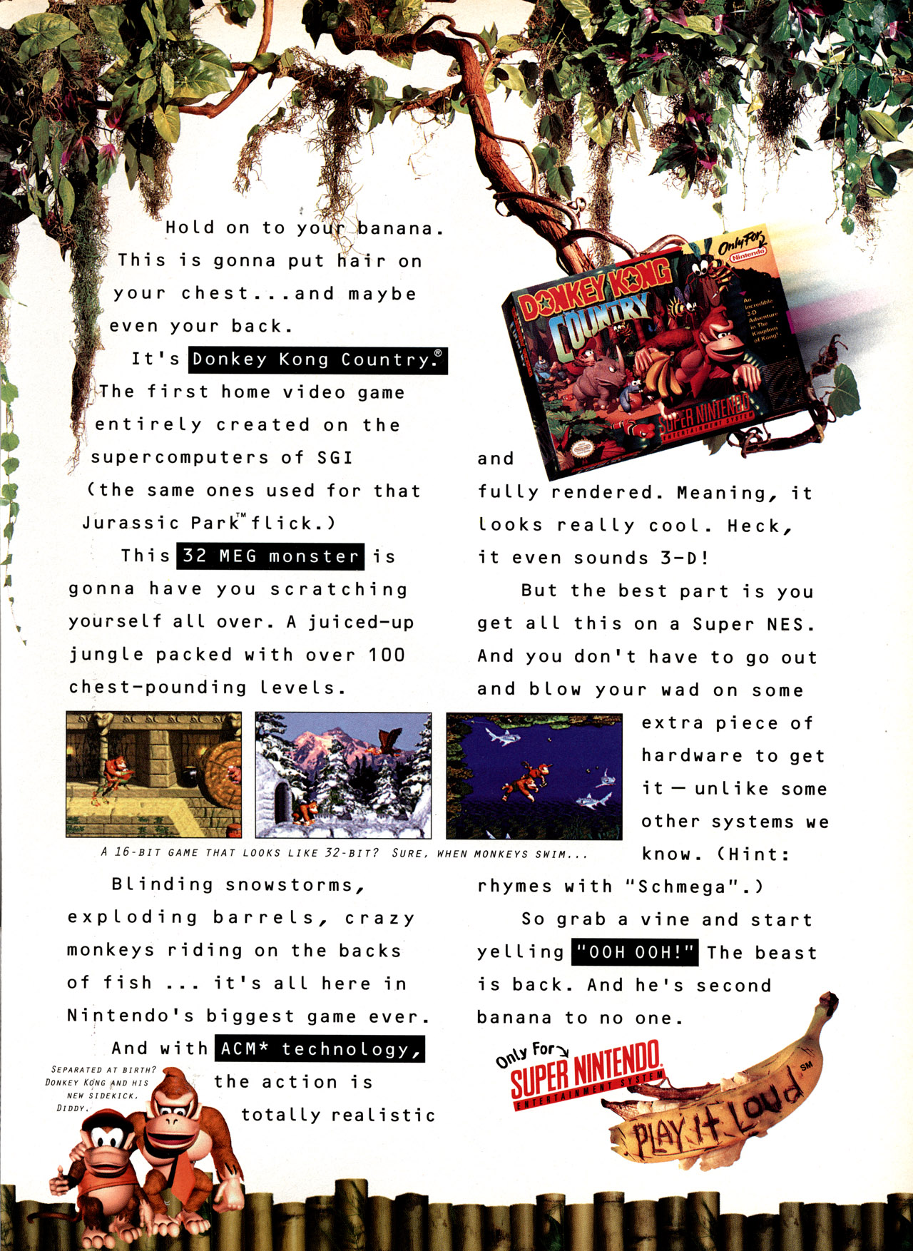 DKC is an incredible breakthrough game in every shape and form. You'll only see it on the Super NES--NOT on 32-Bit adapters or on a nearby planet. The Jungle fever starts November 21!!