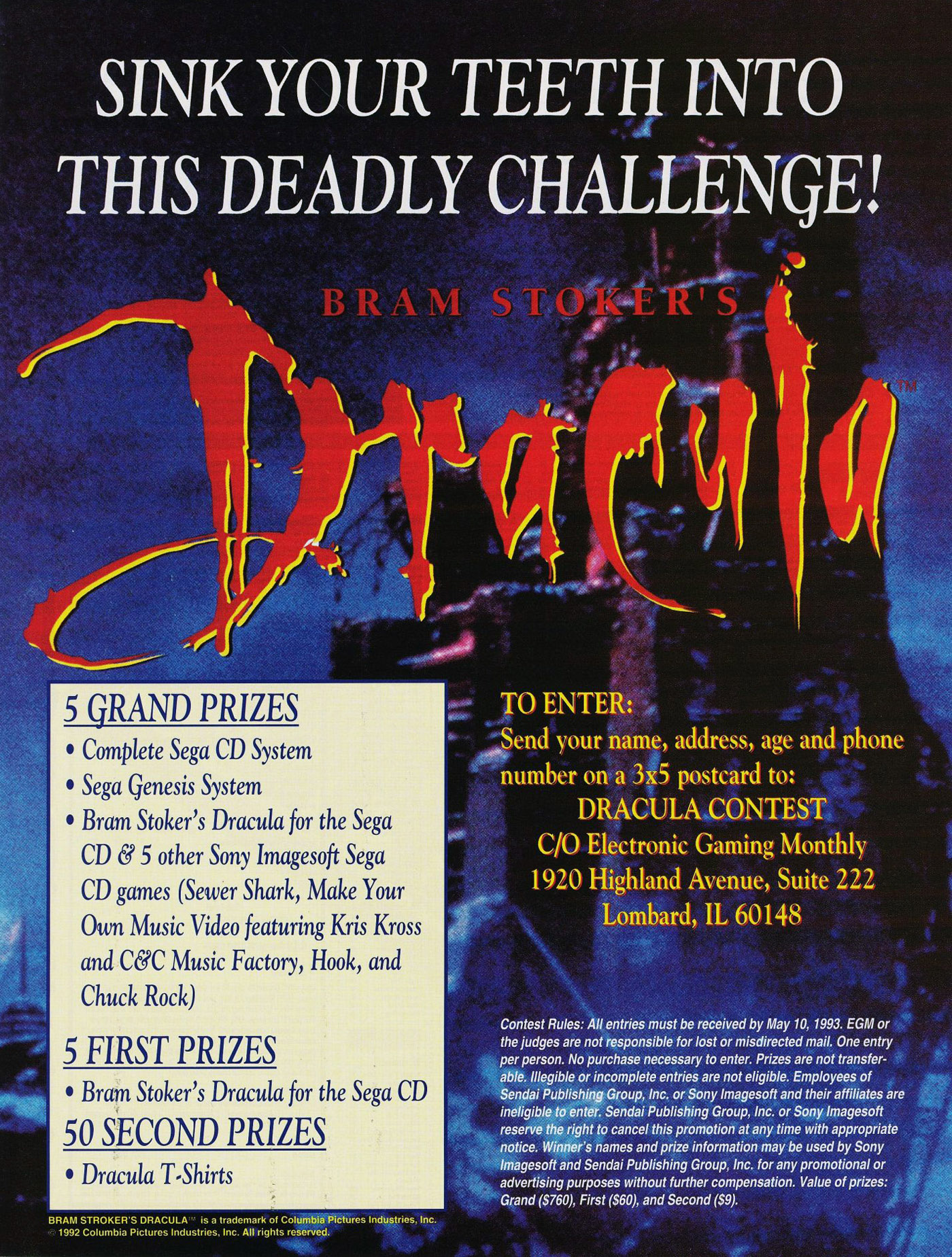Said to be the Masterpiece of all the video game versions of Dracula, the Sega CD rendition is truly a spectacle to see! Not only is it filled with great music and sounds, but with CD memory, the levels were computer generated and mathematically placed with awesome detail!