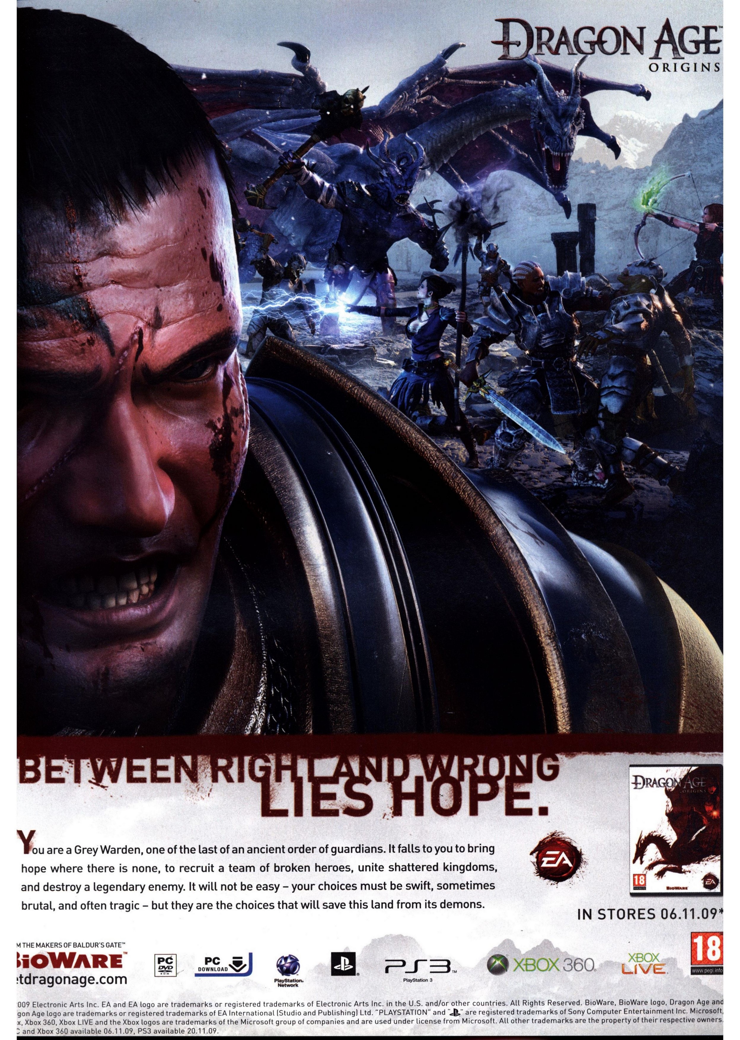 As Far As excellent RPG franchises go, BioWare's lineage makes other companies wilt iftiAjntended lilies. Baldur's Gate redefined RPGs, its sequel defied expectations by being even better, and Mass Effect and Knights of the Old Republic both won our coveted Classic award, while Jade Empire came within a hair's breadth of gold. So when it conies to making new, playable, engrossing RPGs, there's nobody to match BioWare's track record, and that's why you should be excited for Dragon Age: Origins.
