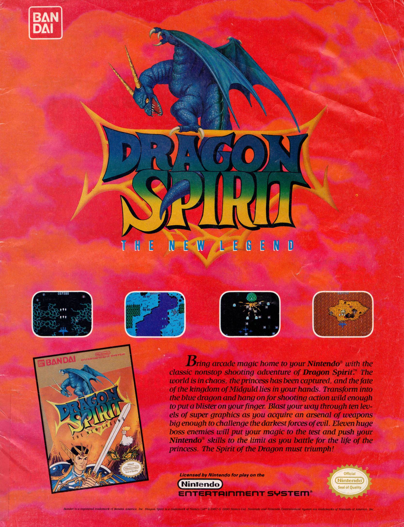 One of Namco's first licensed efforts for the TurboGrafx 16 and now brought over to the Nintendo. In Dragon Spirit you assume the role of a brave knight who has transformed himself into a giant dragon to combat a ruthless enemy who has stolen your princess. As you fight to reclaim her, you'll come up against monsterous dangers and huge Bosses determined to fight you to the death!