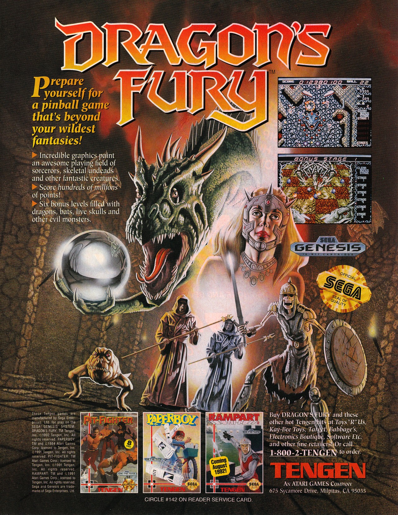 Strap on your headphones and kick out the thrash metal, dude! Tengen may call this pinball, but it is a whole lot more! Dragon's Fury is a cavalcade of demonic, mystical occult figures swimming in a sea of ever flashing lights and high impact explosions. If this all sounds impressive, then you are getting the right picture!