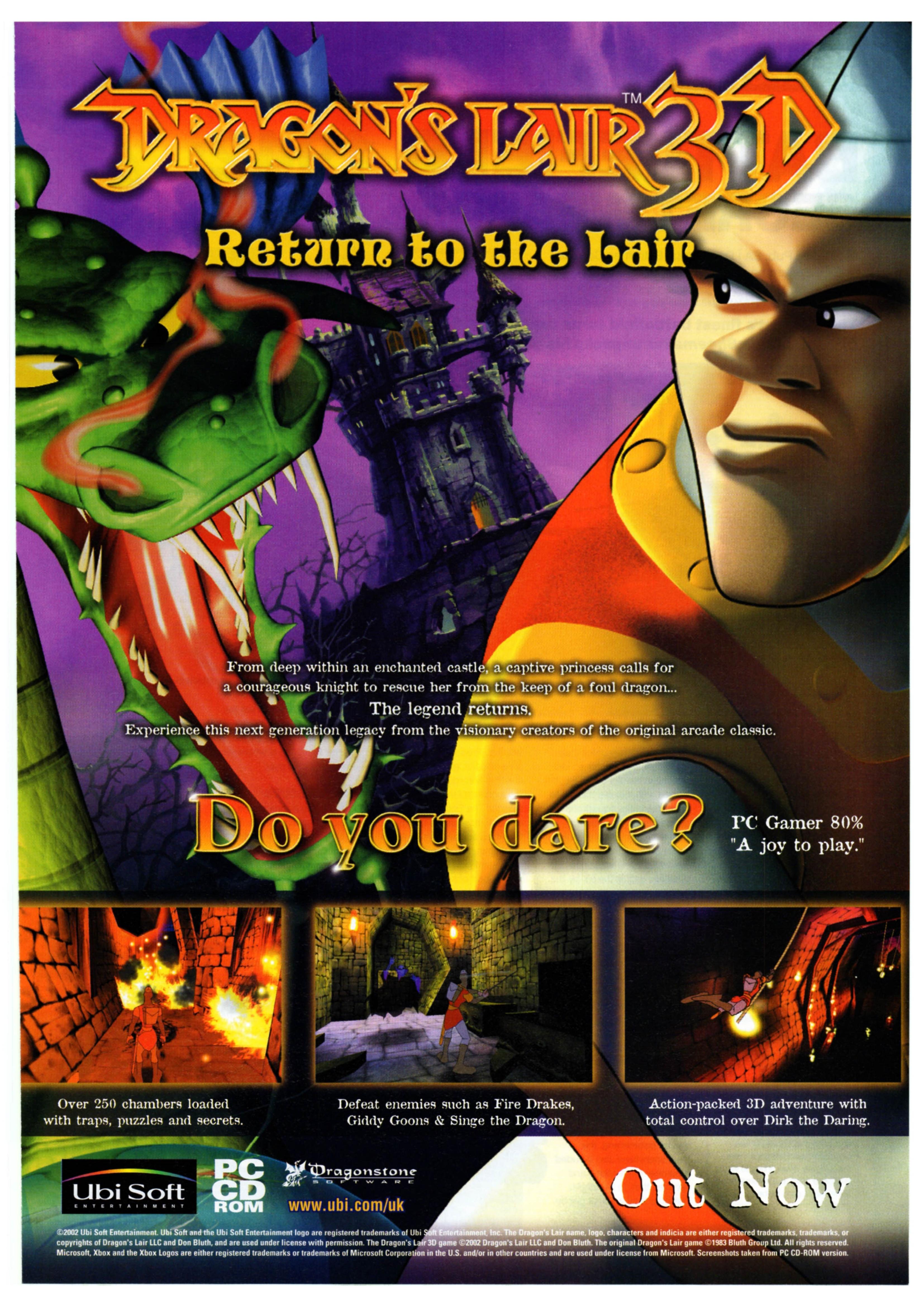 Mostold - timers (I prefer the term 'veteran’- Ed) caught in a wave of gaming nostalgia like to reminisce about those undisputed classics of the golden era - the likes of Space Invaders, Star Wars Arcade, Chuckie Egg - all boasting awful graphics but gloriously pure gameplay. However, there was one title nearly two decades ago that completely reversed this formula. Based on cutting edge laserdisc technology, 1983’s Dragon’s Lair arcade game looked like a full-blown Disney animated movie, while its gameplay consisted almost entirely of pressing the right button at the right time. In a way, the millions who chucked their change into the slot for hours on end were little more than lab pigeons getting to see the next bit of the cartoon as reward for pecking the correct colour.