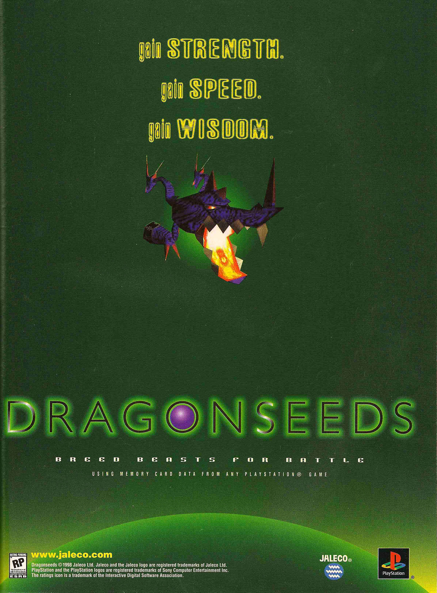 Monster Rancher fans have a new evolution-simulation game to look forward to. Dragon Seeds is Jaleco's offering to this fledgling genre. The game has you cloning and raising dragons for battle, much like Tecmo's unique title.