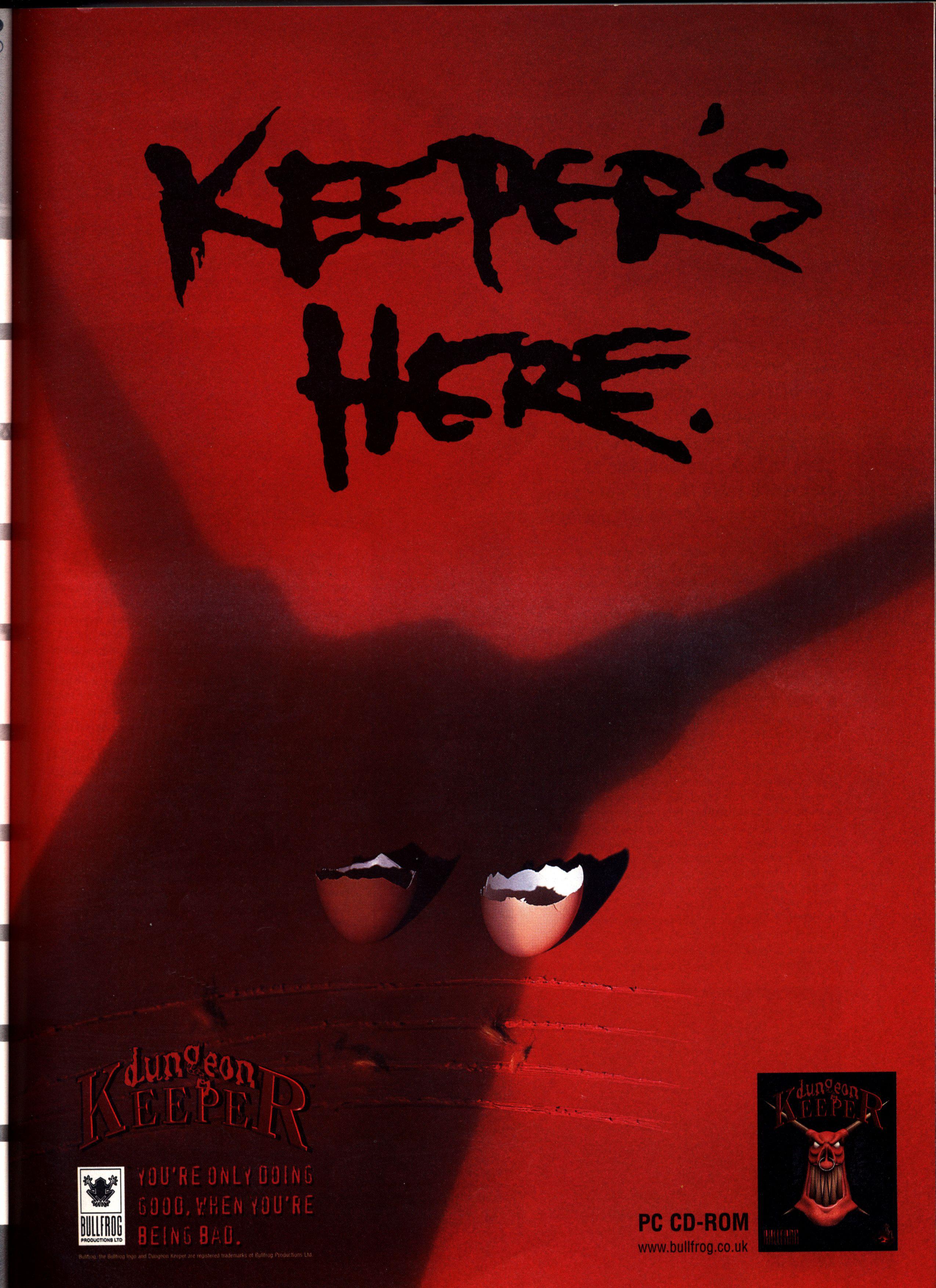 Dungeon Keeper Represents A Triumph of creative endeavour over marketing muscle. A bunch of imbeciles in marketing wanted it released over a year ago, but Peter Molyneux and his team have stuck in there and carried on programming to ensure the game measures up to their own expectations. And now, finally, it's ready for release. Dungeon Keeper, the most anticipated game in Bullfrog's history, has reached the end of its notoriously prolonged gestation period. And it rules.