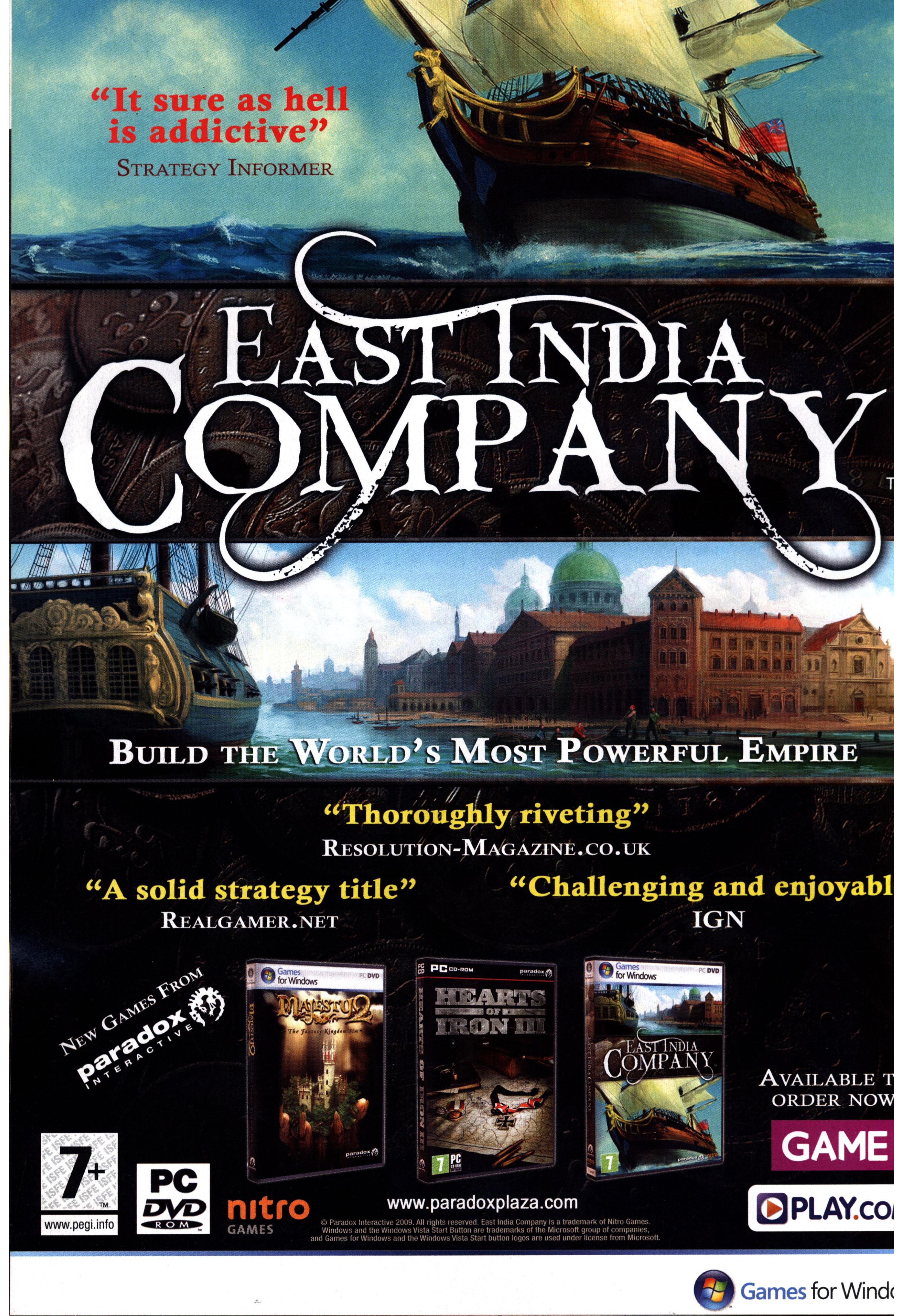 Doubters beware; east India Company is not Empire: Total War, but a 150 year-long economic epic beginning in 1600. The agenda of colonisation was to bleed India and Africa dry, and, being the 17th century, the only way to do this was by sea. Success requires grasping simple economics - fill your ships to the brim and sail between the East and West, trading as you go.