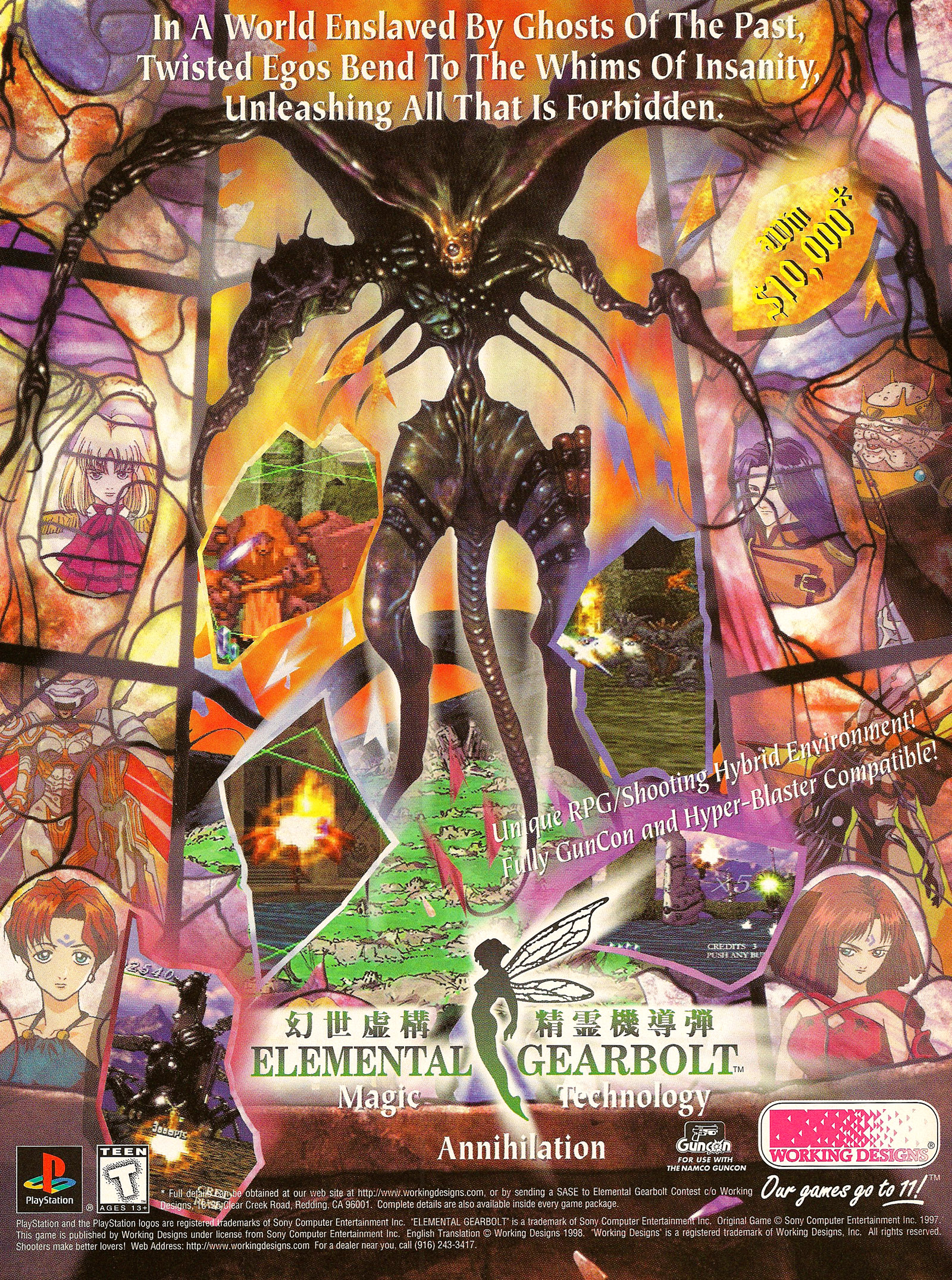 Working Designs' next PlayStation title came as a bit of a surprise to us. No, it's not an RPG or a shooter. It's not even a strategy title. Actually, it's Elemental Gearbolt, the Sony Computer Ent. (of Japan) light-gun game that was recently released in Japan.
