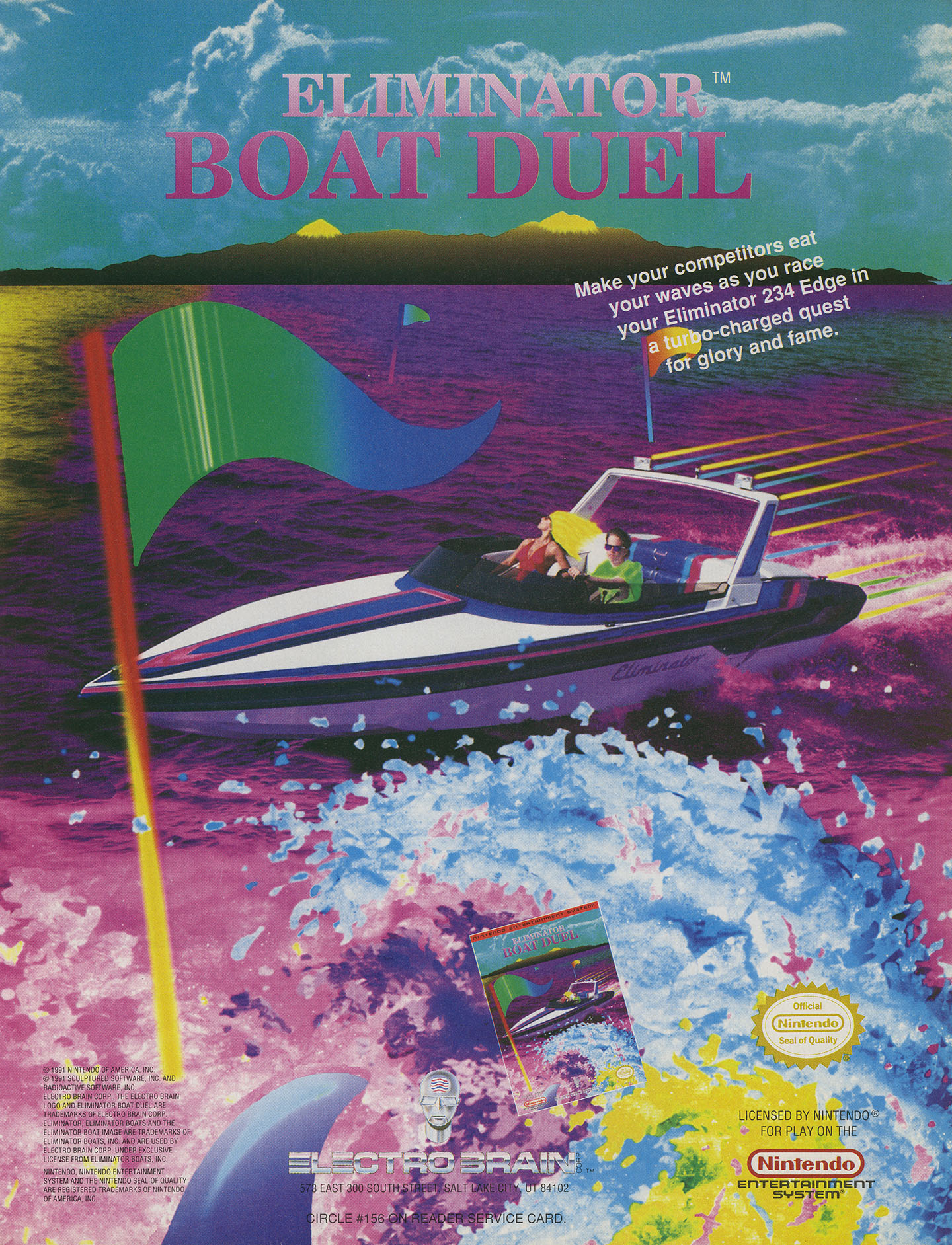 It can either be played against a human opponent or the computer. Open water, the bayou, and even industrial water districts – the settings the races can be run in. There are several sections a boat race consists of: the starting line; the primary sections; the top-down sections are full of such threats to avoid as alligators, sharks, and whirlpools. Each boat race finishes in the side-scrolling view. If the boats come through too much close together, girls in bikini become confused and ask for a slo-mo replay. Then prize money is awarded, players may use it to repair and upgrade the boats with better steering, tougher hulls and faster engines.