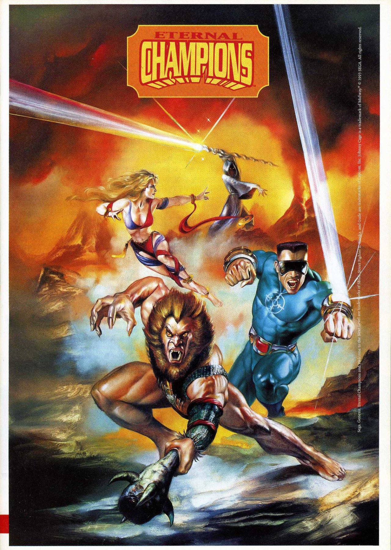 Eternal Champions s a new fighting game from Sega that has everything pugilistic power punchers need: combos, speed, challenging Al, and great graphics. Also thrown in are fascinating character profiles and some fantastic background scenery. If you love to slug, you're gonna love Eternal Champions.