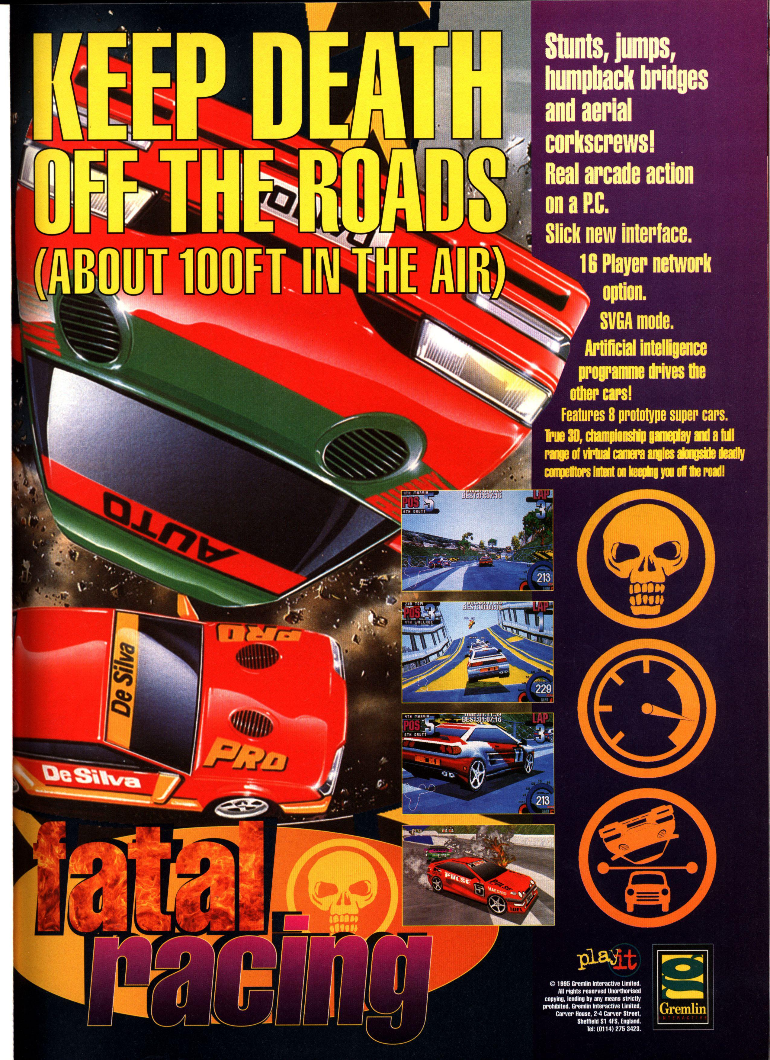 Gremlin Has Made A Few Viewed-from-behind racing games in its time. "And now it has made another. So what's new?" you're probably thinking. Well, for a start, Fatal Racing isn't just viewed from behind. You can view the proceedings from an in-car viewpoint, from two outside views and another in-car view with a rear-view mirror option - although, as we all know, only ponces use the rear-view mirror. Who wants to know what losers are up to? Only their mothers. And I bet even they won't be interested once you've shown them your hand-painted helmet.
