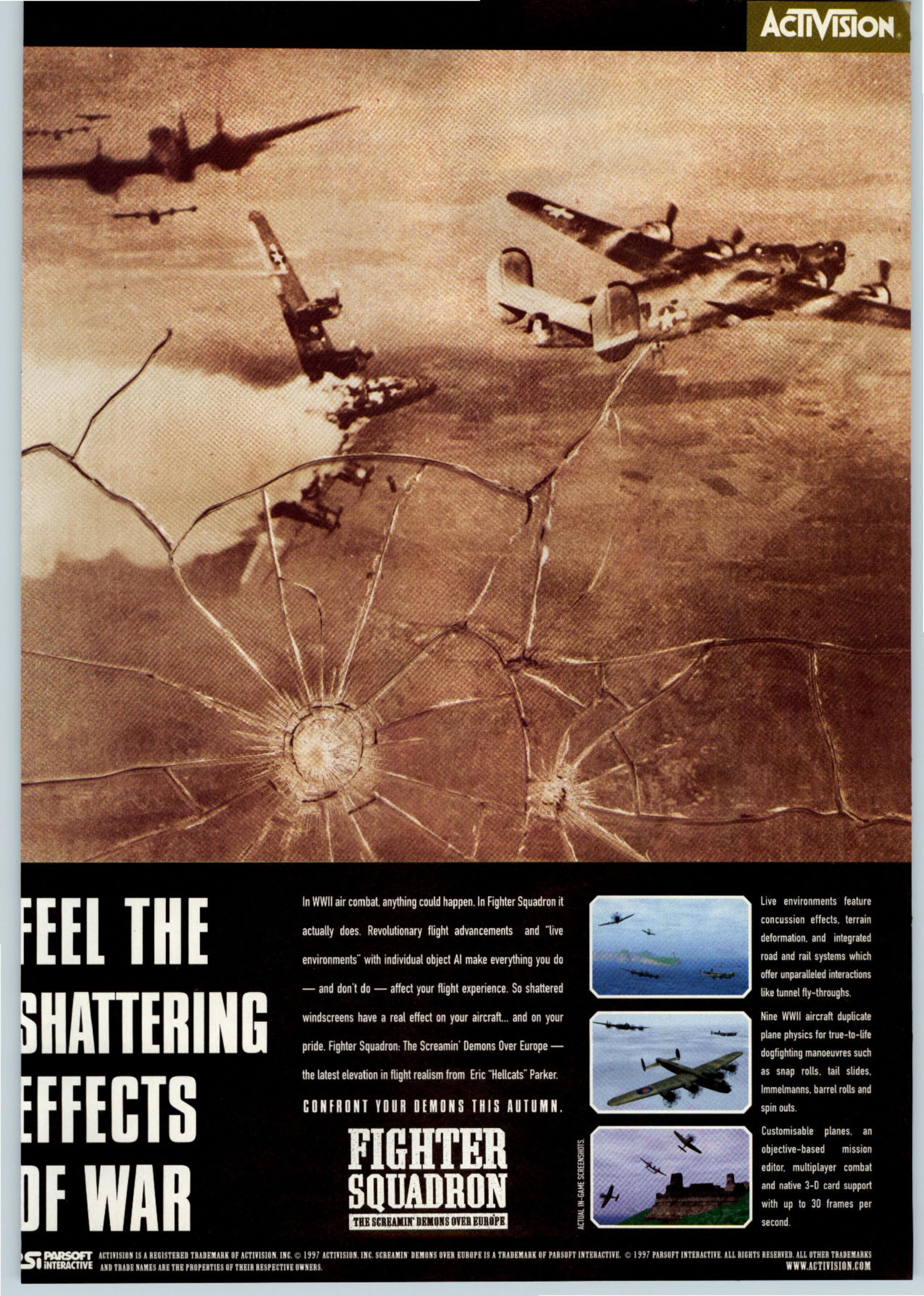In the meantime, Activision are just about to enter the fight with the overly-titled Fighter Squadron: Screamin'Demons Over Europe, being developed by ex-Macintosh bunnies Parsoft Interactive. They are most famous for the actually-quite-playable-really A-10 Cuba! a few years ago. But what is Screamin'Demons offering that will make us stand and salute?