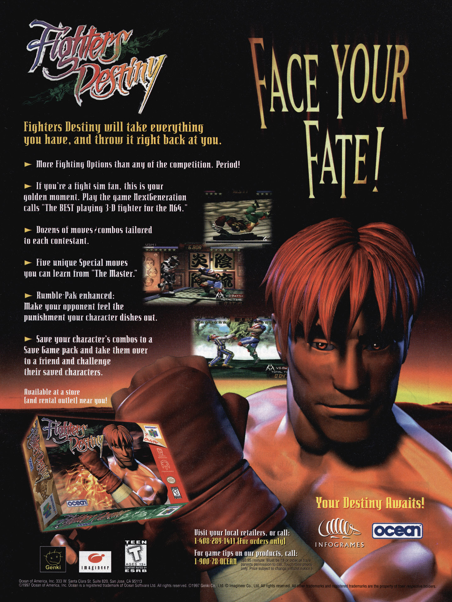 Finally, the chance to silence all the critics who have waffled on and on for time eternal about the lack of a decent beat-them-up on the N64. First we had WCW Vs NWO World Tour, which, although a wrestling game rather than an actual fighter, had top beat-'em- up qualities, and now we've got Fighter1 s Destiny, which means the best has just got a hell of a lot better!