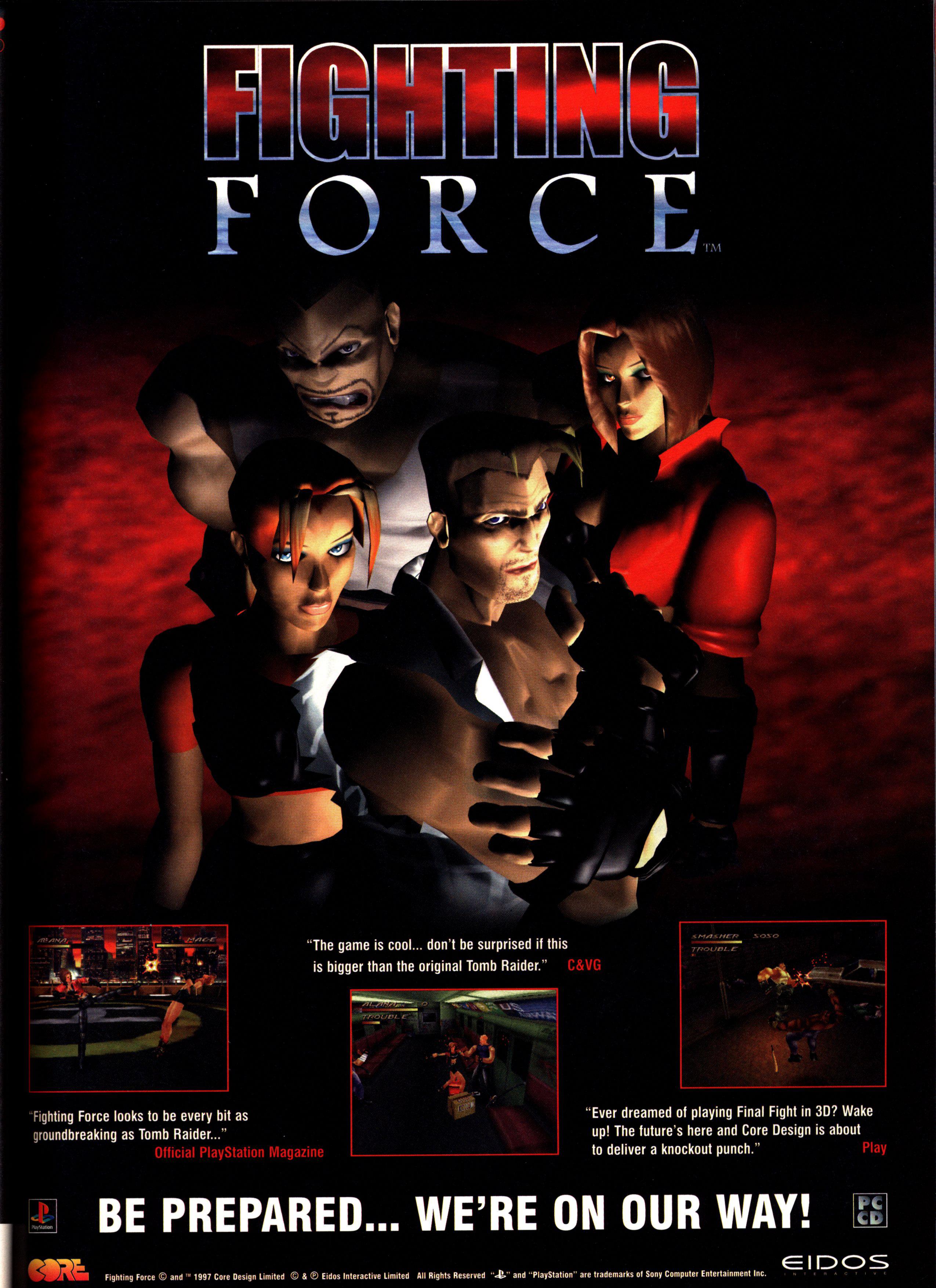 Fighting Force is an old-school Streets of Rage-style beat-em-up that'll have PlayStation thugs bashing punks bloody for months to come. If you're down with blasting bad guys and kicking fools in the head, then Fighting Force is just the violent fix you're looking for.