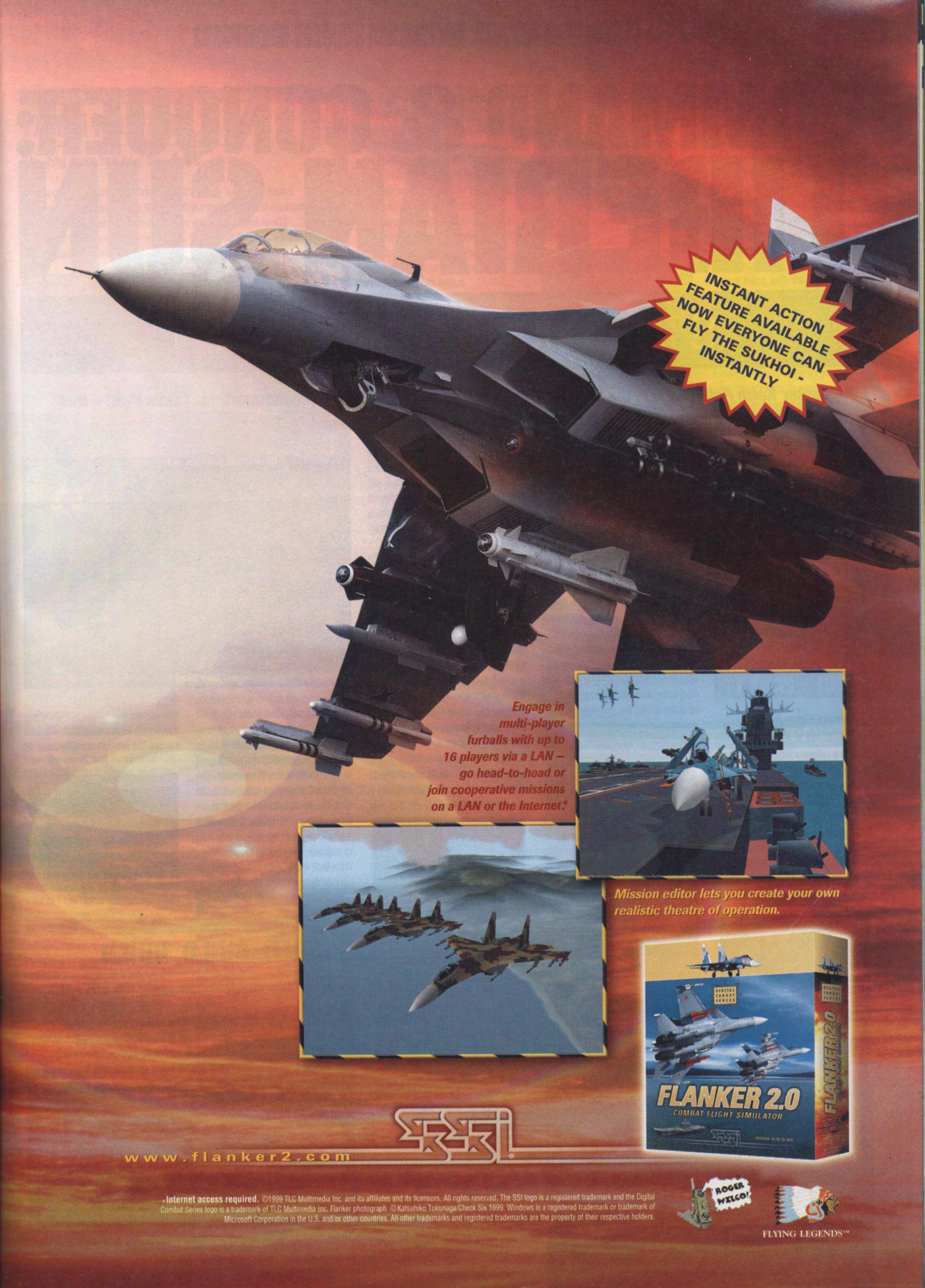 There's a lot still to go into Flanker 2.0 at the moment. Weather effects will apparently be so detailed that clouds will actually have water densities that affect infra-red missiles as they fly through them; a mission editor enables you to create complex and detailed scenarios that can be distributed at will; collision detection is mapped right down to the surfaces of the planes, rather than the standard method of surrounding each unit with a solid box, meaning bullets and missiles can fly right between the tail struts without hitting anything. The list goes on and on. And it all sounds rather impressive. The only fly in the ointment is the lack of a dynamic campaign engine, so how it fares against F-22: Total Air War or Falcon 4.0 we'll have to wait and see.
