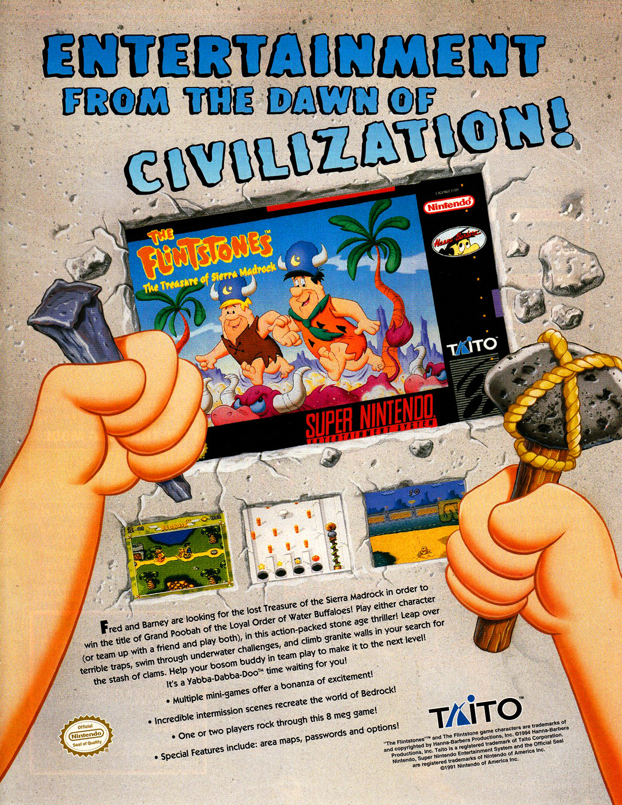 Fred Flintstone tem uma importante missão a resolver,encontrar um tesouro escndido na pedreira.Ele conta com os equipamentos da pedreira e as dicas dos outros trabalhadores.Sua missõ é simplesmente achar o tesouro de Sierra Madrock.Bom,"simplesmente não é não,mas você vai dar muitas gargalhadas com a hiperatividade do jogo.O mesmo acontece em Flintstones:The movie.No jogo do filme,segue-se o roteiro do filme,mas com você no comando!Acha que é moleza,não é não.Você deverá apostar em rodas da fortuna,cassinos,ganhar moedas,trabalhar na pedreira...Ufa,estou cansado de tanto escrever.Bom,o meu download do jogo do Tesouro de Sierra Madrock está acabando,vou-me embora jogar!