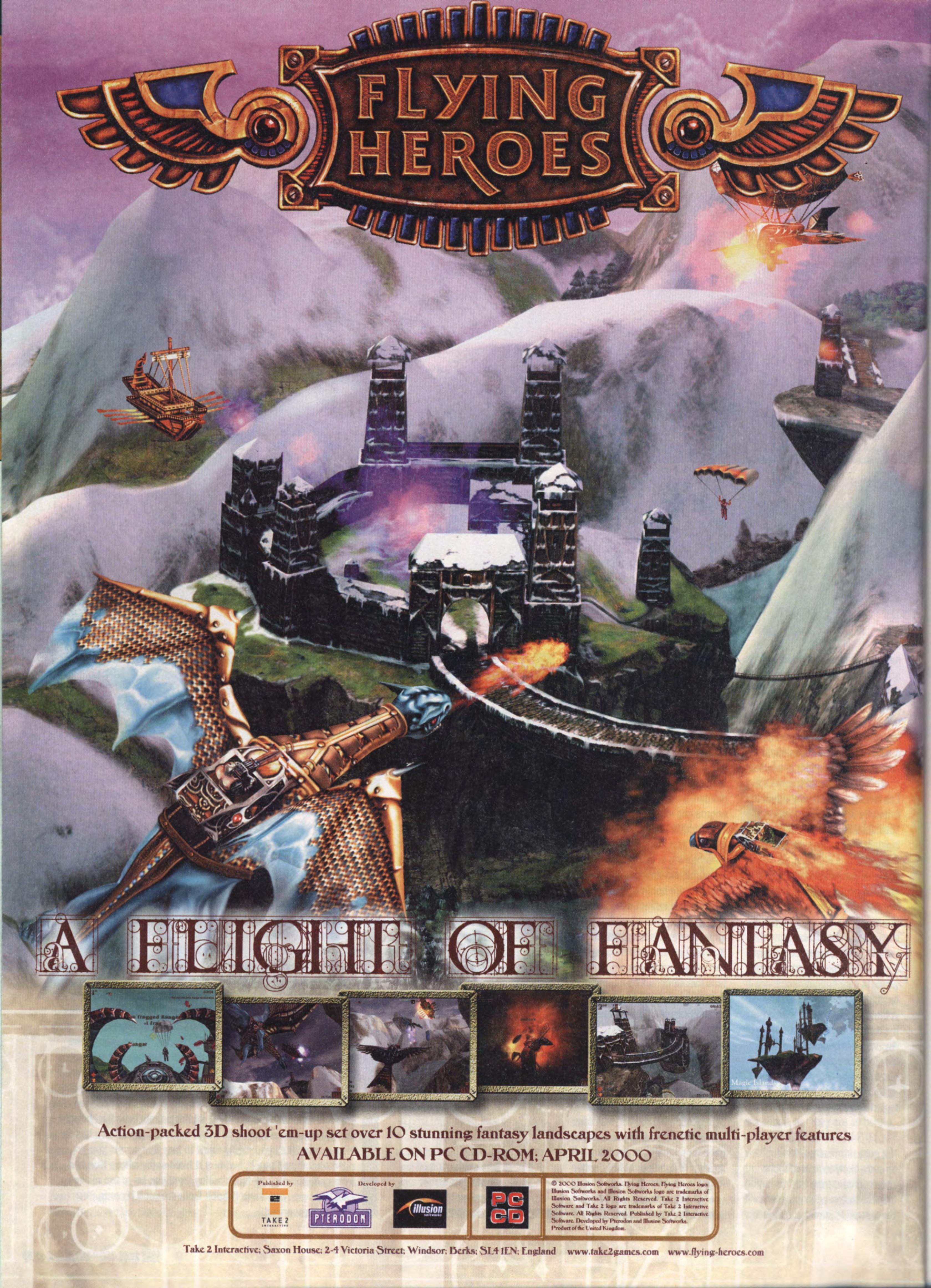 High-speed Internet accounts might not have hit these shores yet, but they are imminent. And when they do you can expect a new-found enthusiasm for multiplayer shooters such as Unreal Tournament and Quake III as well as a whole raft of new games that turn the basic 'arena and guns' formula into something completely different. Rather like Flying Heroes where you can forget about rocket jumping and concentrate on blasting other magnificent people and their flying machines out of the sky.