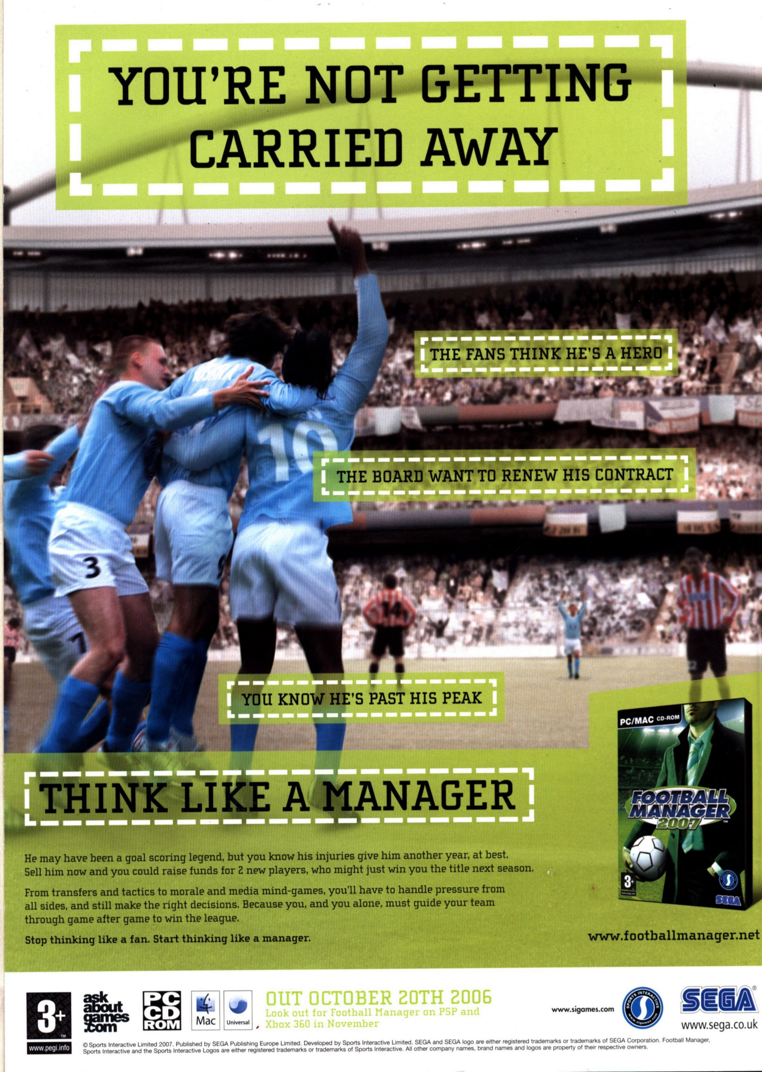 Here goes then. I gave up playing Football Manager (or Championship Manager, as was) years ago, following a wretched existence of meaningless campaigns that were a waste of life, the hours ticking by in a fetid existence of lower league survival. All things considered, I'm better off without it - you have more time on your hands, enabling you to embark on other arguably equally pointless pursuits. As such, when the annual update (and it is just an update) comes around, it's with a vague sense of superiority that I boot it up and scoff at its array of new features, all designed to lure me into its sick world.