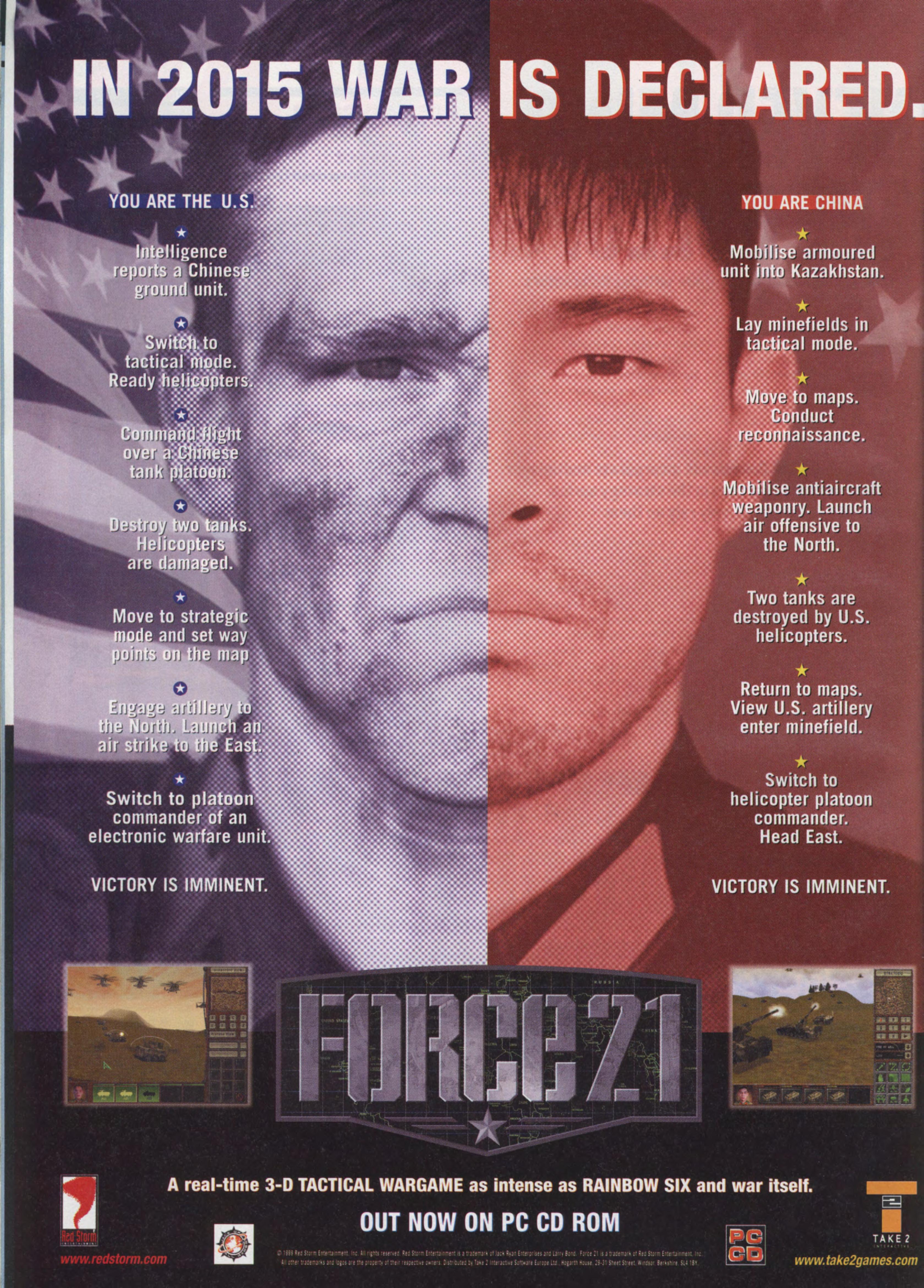 All hail Red Storm! All hail Red Storm! Finally someone has come out with a real 3D war game that makes you sweat bullets and get that 1000-yard stare after a butt-kicking game session. Force 21 is Red Storm's newest beast which makes all other war games look like little children. Set in the year 2015, Force 21 lets players see and actually work through the challenges of small-unit combat as it might happen in the near future. What makes this stand above the other war games out there is the awesome 3D environment in which you get to play. Instead of relying on a hex map on which you think there is a hill, in Force 21 you see the hill and can use it to your advantage. There is no more of the wondering if what is on the map is real; you can go check it out for yourself and see if you actually want to position units at that spot. I'm getting a little ahead of myself, gentle reader, and should fill you in on the story line. In the year 2015 the Chinese want to take advantage of the weakening power structure in Kazakhstan and reclaim oil rights that they think are rightfully theirs. Well, that's where we come into the picture, my war-gaming friends. We rise up and say, "Oh hell no, not on our watch are you going to bully other countries around." We then unleash Force 21, a modern army with some aging circa-1990 units and weapons with a few bad-to-the-bone new techno units that kick butt and take names. Force 21 can be played as a single-person game starting with very small missions in the campaign and then working up to more complex and bigger missions, but the real kick in the pants is when you can hook up with four of your buddies and wage some serious 3D war. I'm not going to give too much away on the rest of the game because, just like Rainbow Six, this is a game that is fun to explore not knowing much except that it rocks!!!!! Oh, on a side note, Command and Conquer can pack up its weapons and go home now because there is a new sheriff in town.