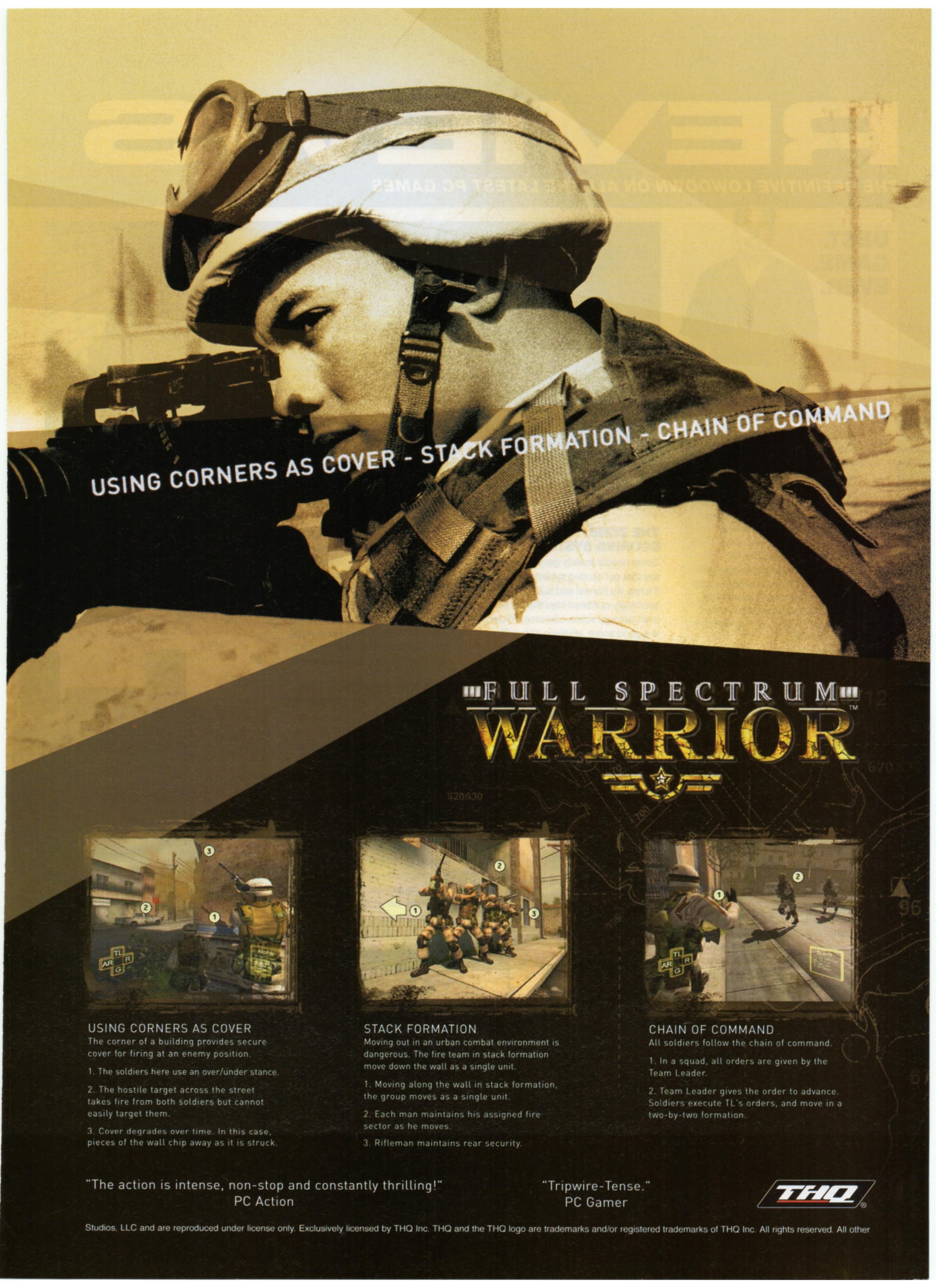 I really liked Full Spectrum Warrior. I just wish there was more of it to enjoy, and something has to be done about the multiplayer - it just wasn't enough. If ever there was a game that cried out for a sequel, Full Spectrum Warrior is it.