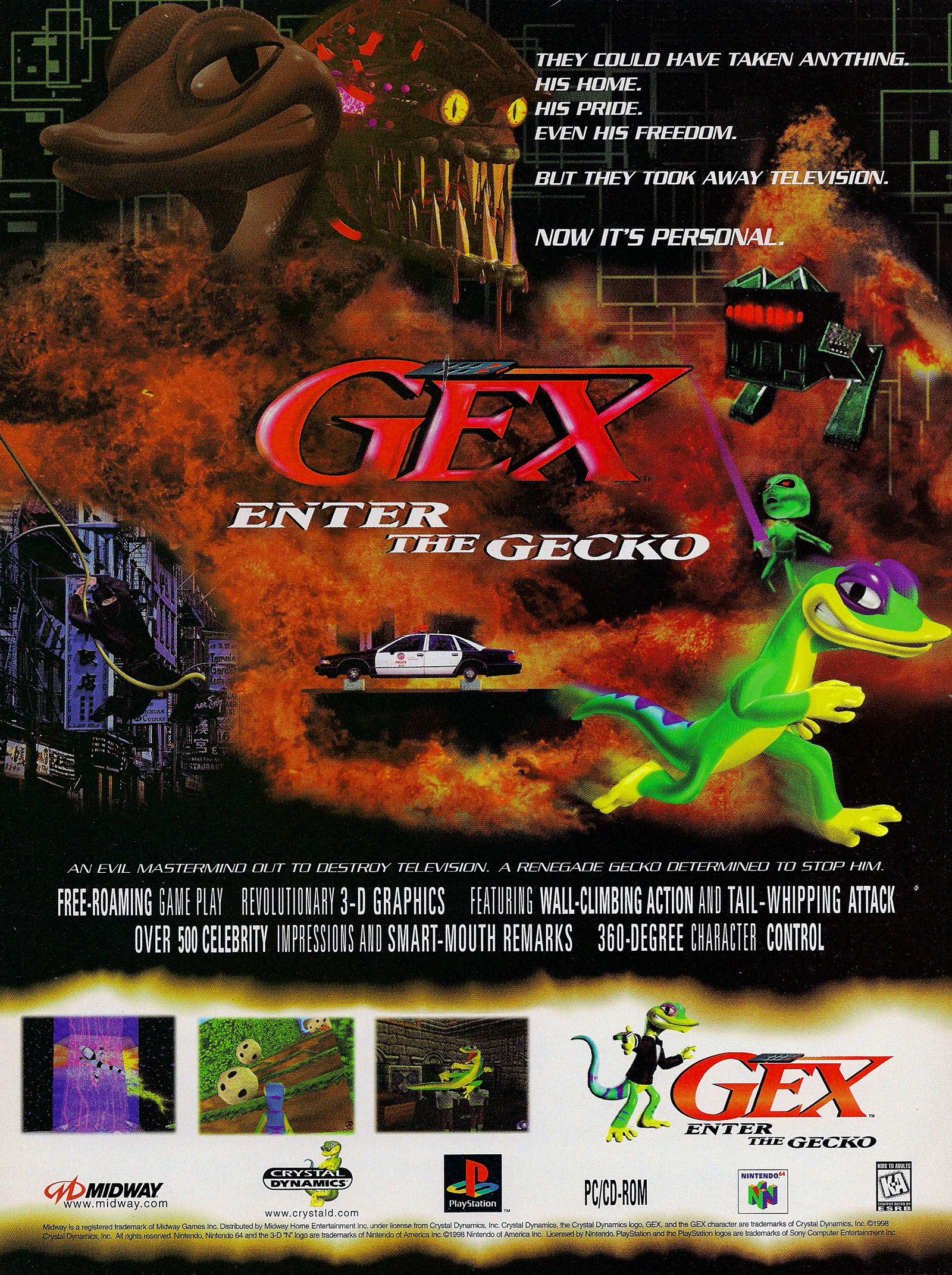 Cower, Crash, and beware, Blasto there's a new platform king on the PlayStation! Gex returns for his second adventure, Enter the Gecko, delivering a three-dimensional tail-kicking of the highest order.