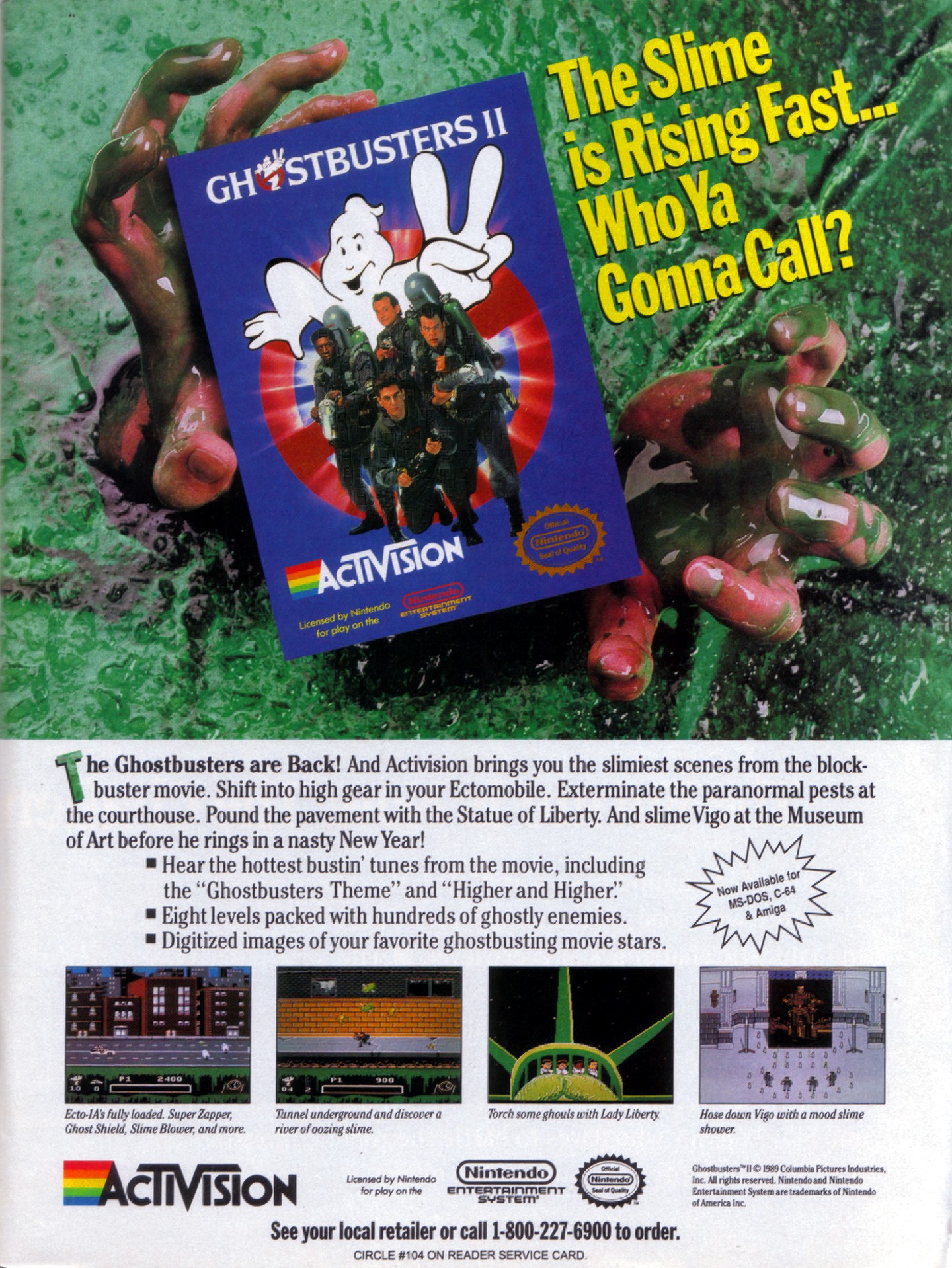 Activision's Ghostbusters 2 is a snappy sequel to the ever popular Ghostbusters. Lots of goo and slime make for great gaming. Who ya gonna call? Ghostbusters!