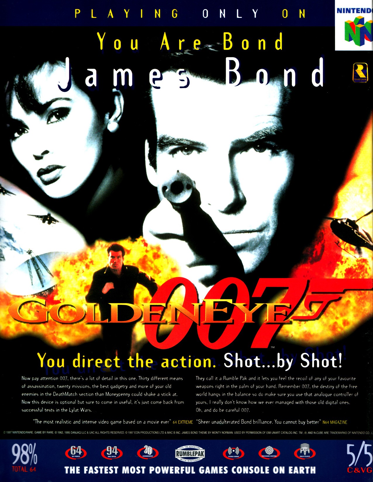 If you only buy one N64 game, make it this! Unmatched multiplayer action and superb one-player game - you are James Bond.