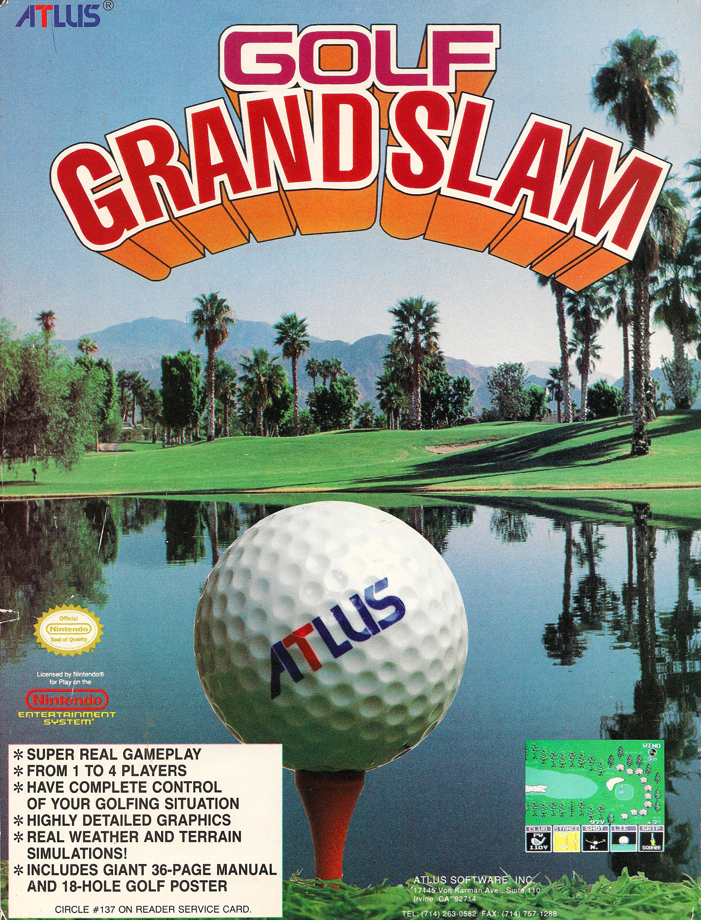 Golf Grand Slam by Atlus doesn't waste your precious NES playing time by messing around in a club house, dishing out ditzy advice, or flashing glitzy ball-in-flight shots. Instead, you immediately get down to great, no-nonsense, overhead view NES golf.