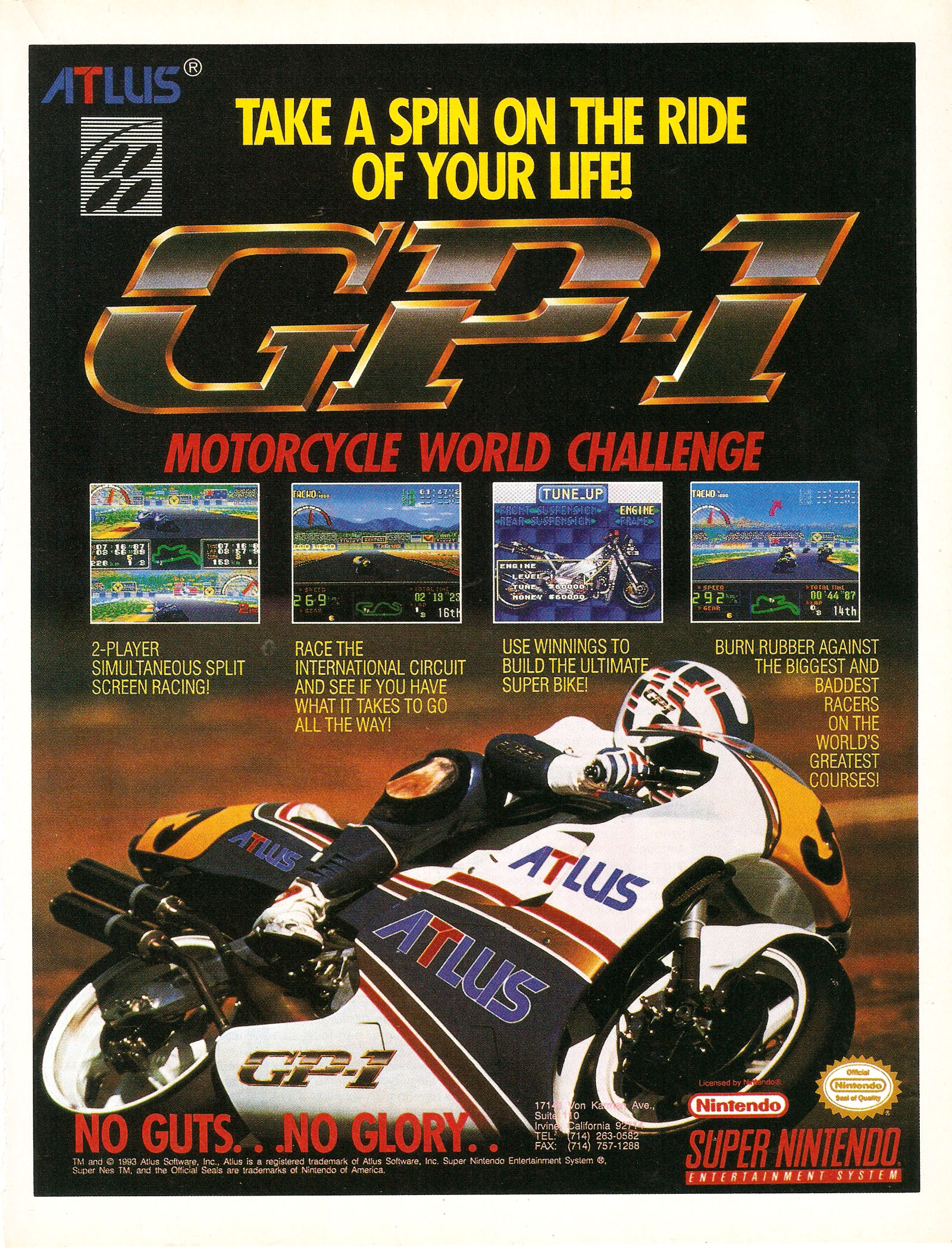 With so many F-1 auto racing games available, you wouldn't think there are any driving thrills left. Been there, done that, right? Wrong! Try hitting the track with GP-1, Atlus's thrilling new motorcycle racer.