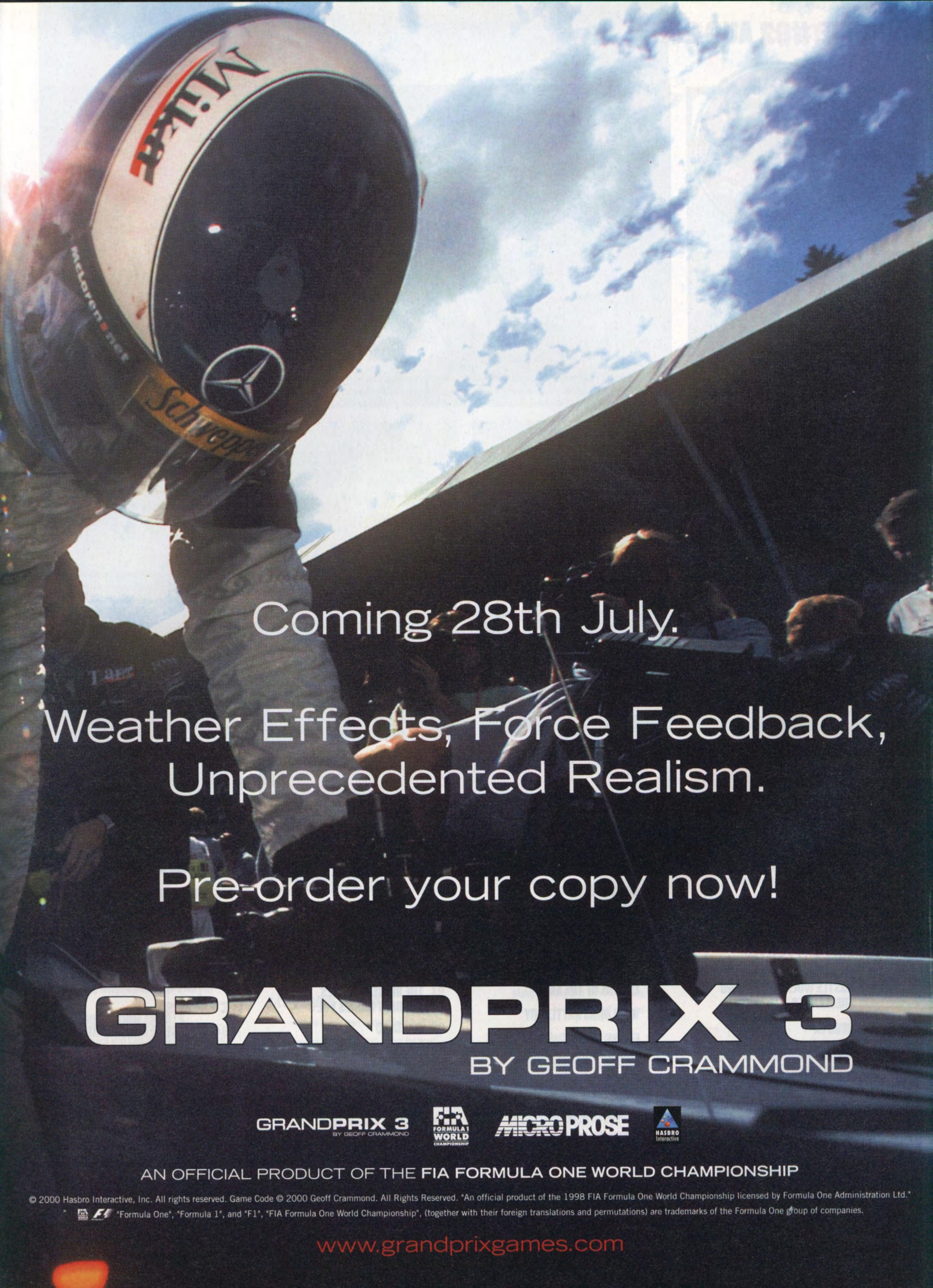 - Thank God, at least someone can still give accurate and unbiased reviews we can rely on. How certain other gaming magazines could rate GP3 so highly is beyond belief, as it's a game with dated graphics and numerous flaws. Basically, it's exactly the same as its four-year-old predecessor. I think you got the review pretty much spot on with 80 per cent. Although you could have mentioned that the game runs poorly with a Voodoo 2. Don't get me wrong, I love playing GP3, but 80 per cent is the maximum you can give a game when there is no split-axis peddle option (pretty much a necessity for a driving game!), replays are only ten seconds long, the graphics and sound are dated and there are loads of annoying bugs. I'm going to go back to Grand Prix Legends, which is still the most entertaining racing game, even though it's two years old.