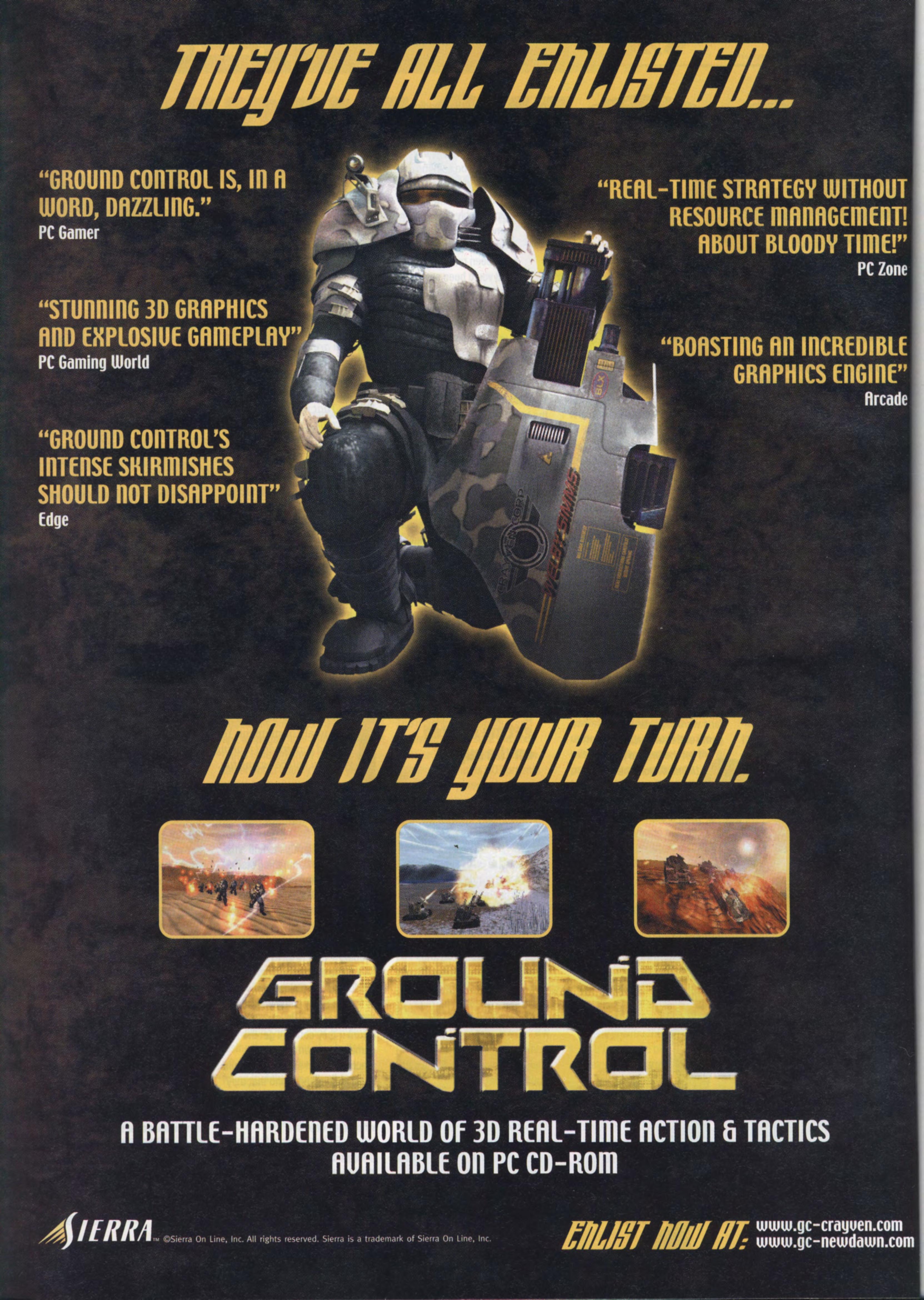 Ground Control ms one of the first RTS games that well and truly washed its hands of resource management and instead opted to concentrate on individual units, fantastic gameplay and creative scenarios. Put simply it's a race between two political parties - the good Crayven Corporation and the evil Order Ot The New Dawn - to colonise an alien planet and wipe each other out. Gorgeous graphics and fantastic attention to detail make this a strategy player's dream come true.