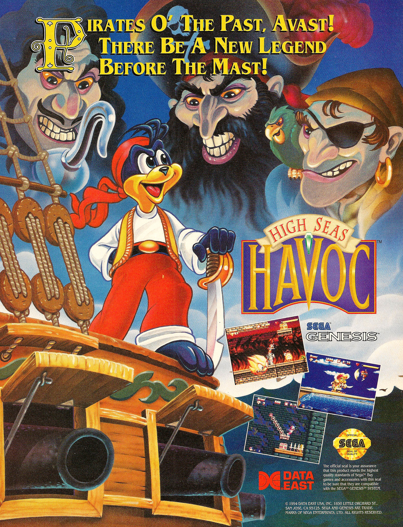 Following right along with all the other mascot games comes Data East's High Seas Havoc. To put it simply, if you like Sonic, you will love Captain Lang! All of the excitement is here, with a few new tricks and abilities like the flash kick.